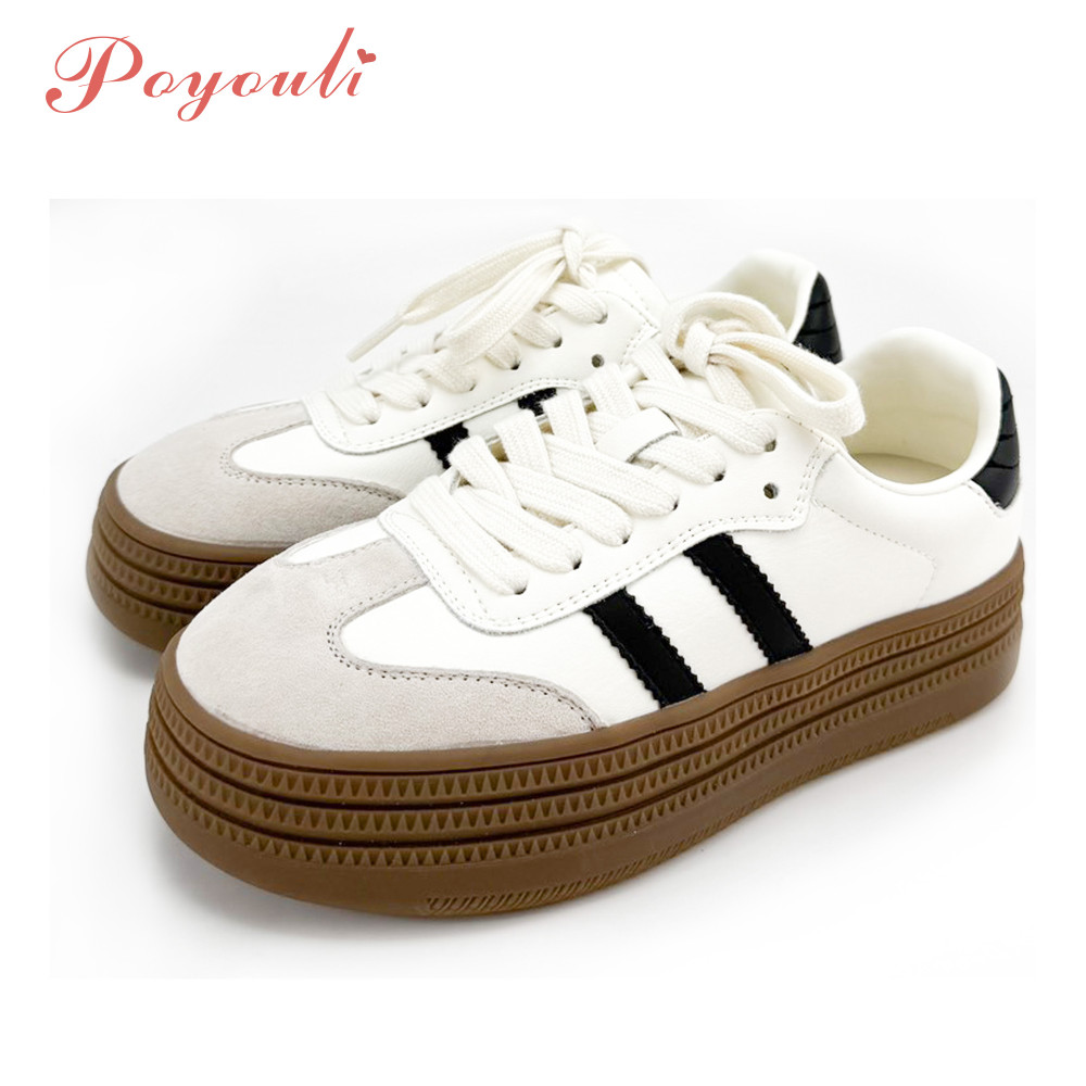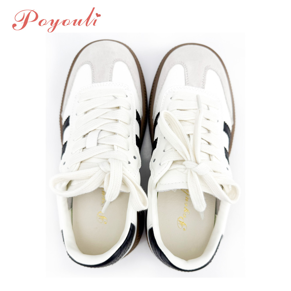 POYOULI方格甜酷綁帶造型休閒鞋-淺金