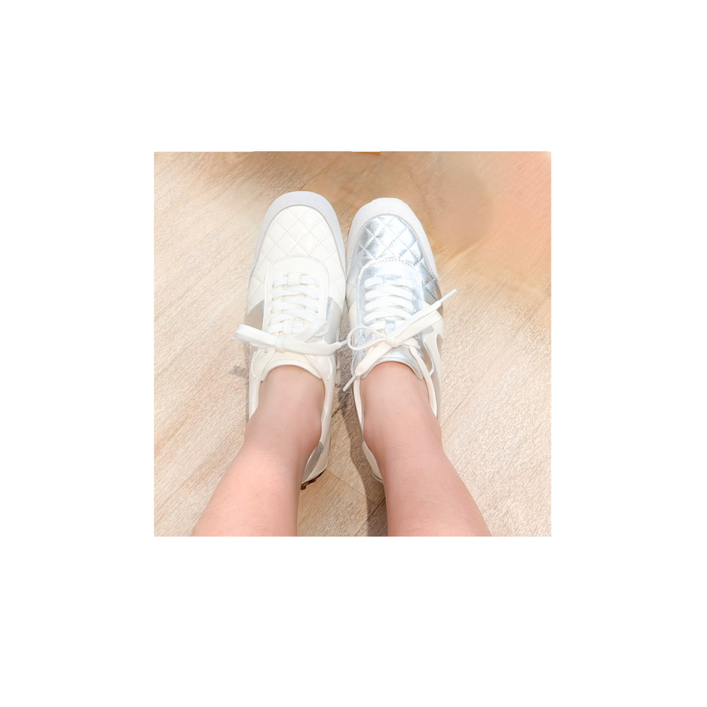 POYOULI方格甜酷綁帶造型休閒鞋-淺金