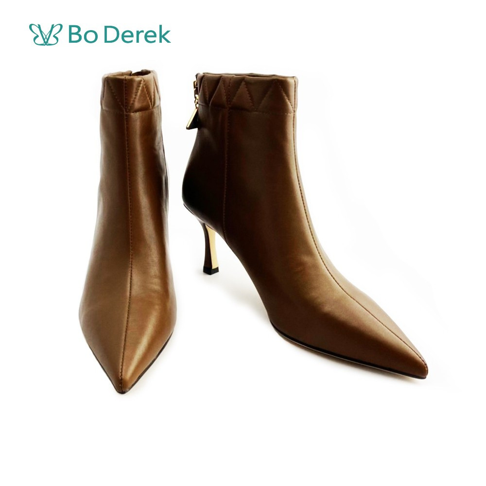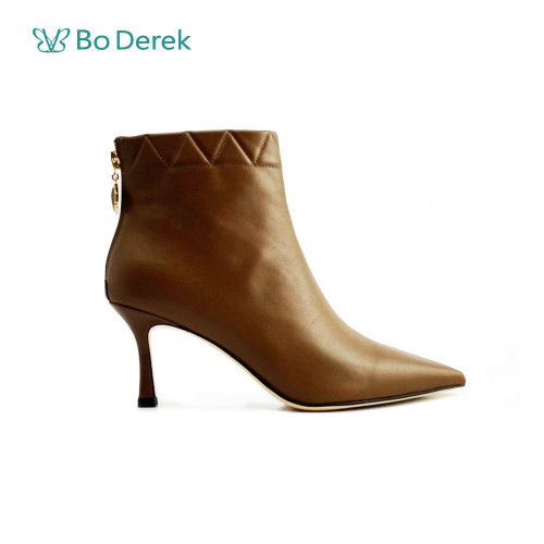 Bo Derek 質感V口造型真皮粗跟短靴-駝