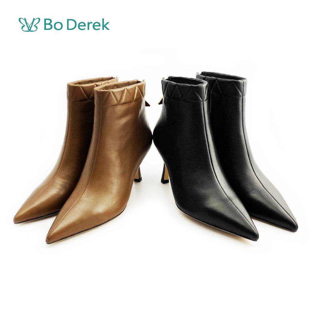 Bo Derek 質感V口造型真皮粗跟短靴-黑