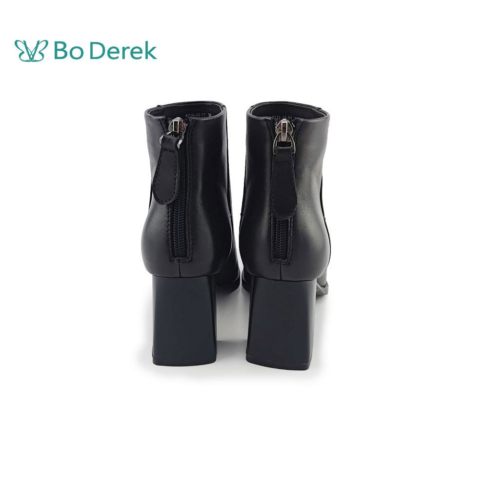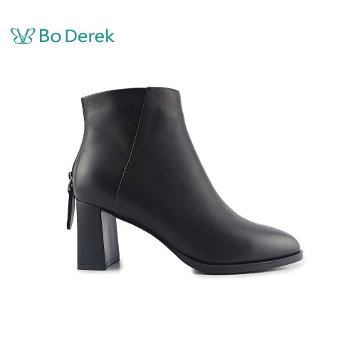 Bo Derek 優雅素面牛皮粗跟短靴-黑色