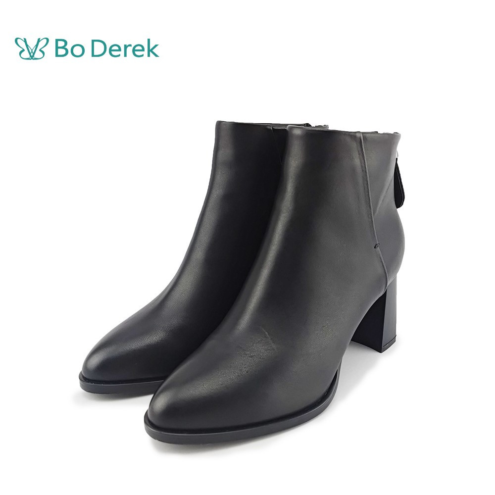 Bo Derek 質感V口造型真皮粗跟短靴-黑