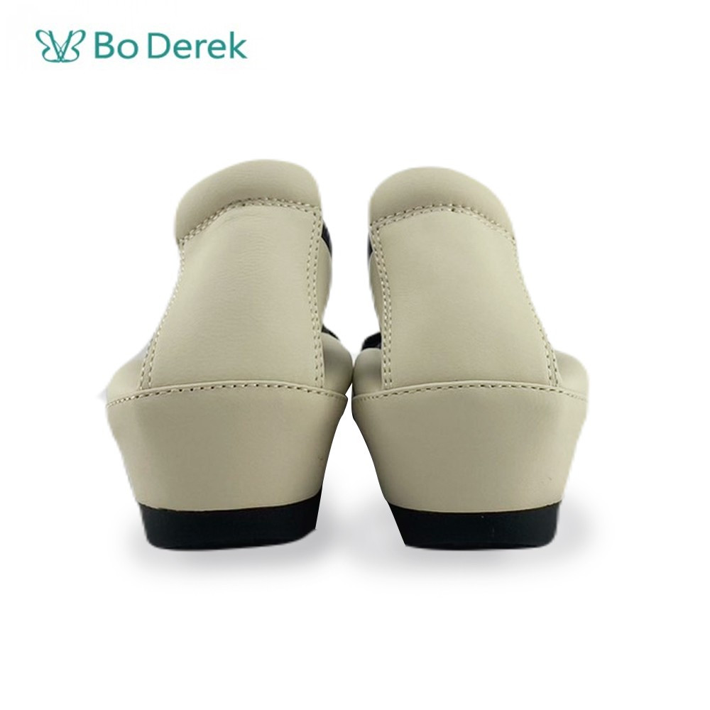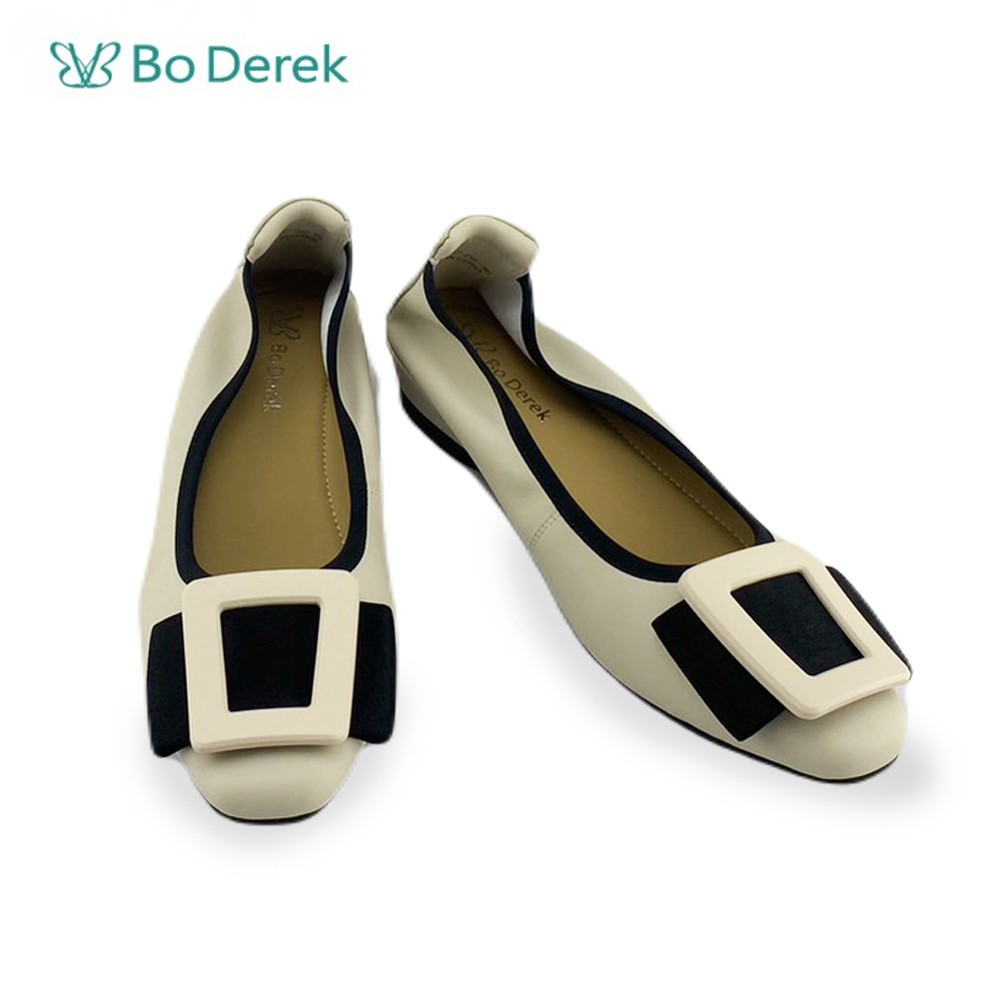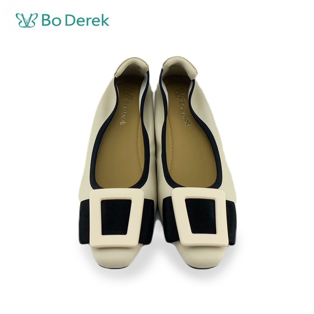 Bo Derek 拼色方扣軟皮平底鞋-米白色