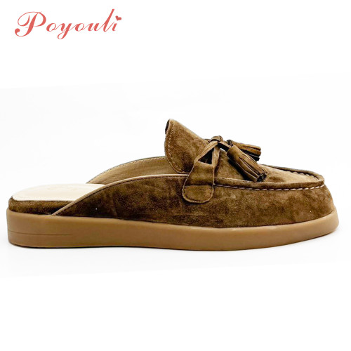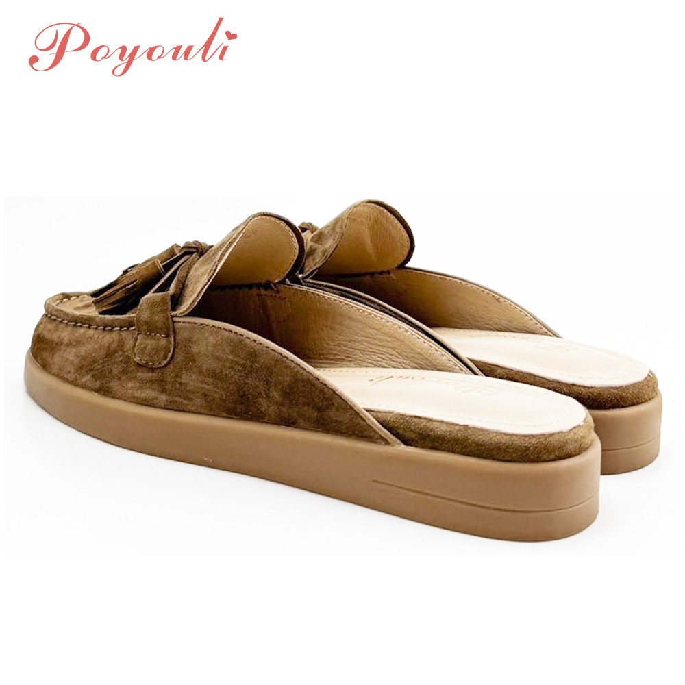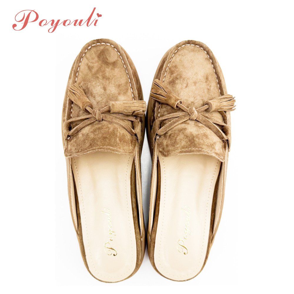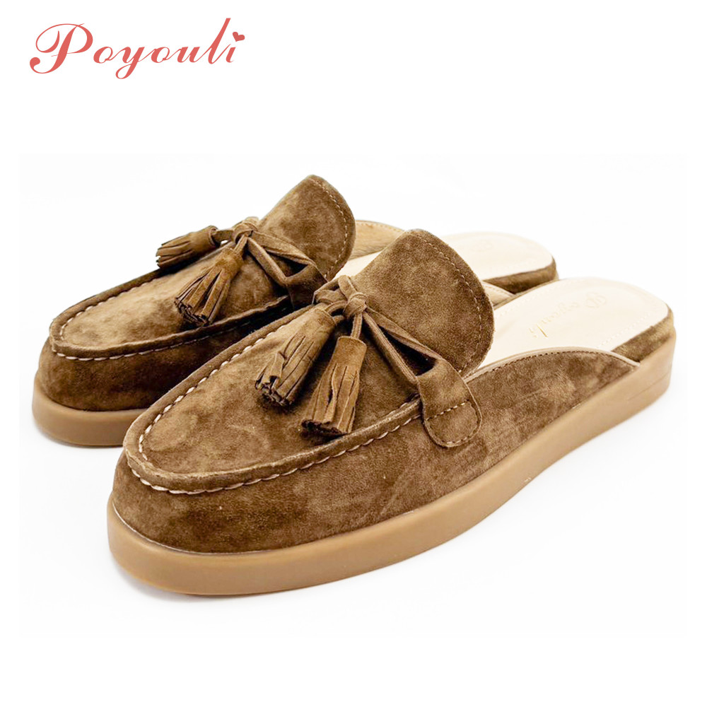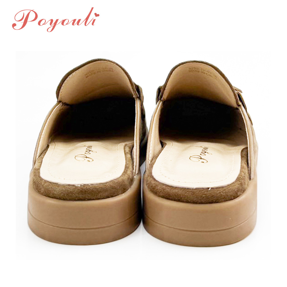 POYOULI帥氣牛仔蝴蝶結流梳平底包鞋-棕
