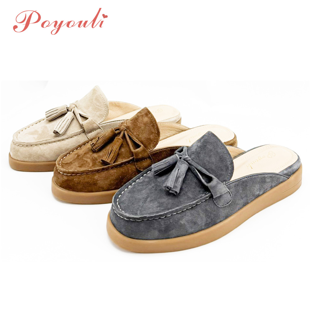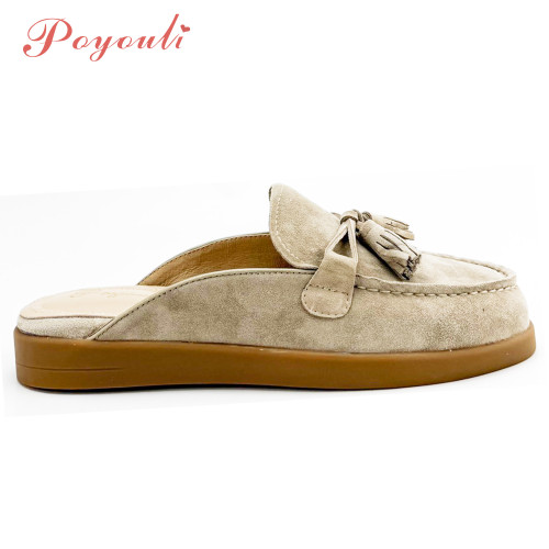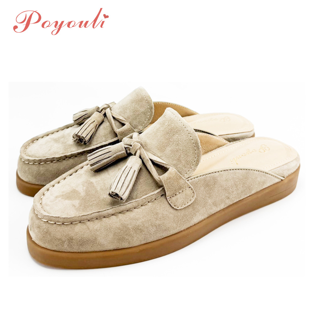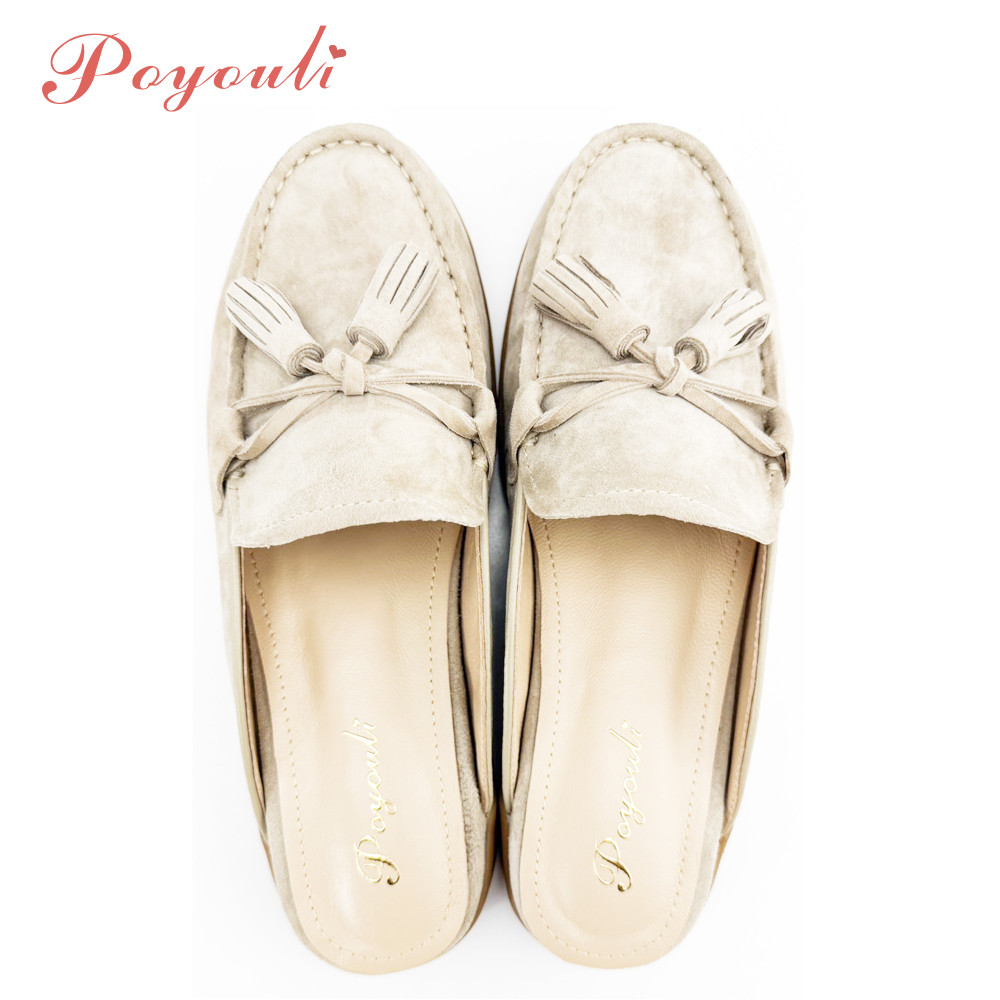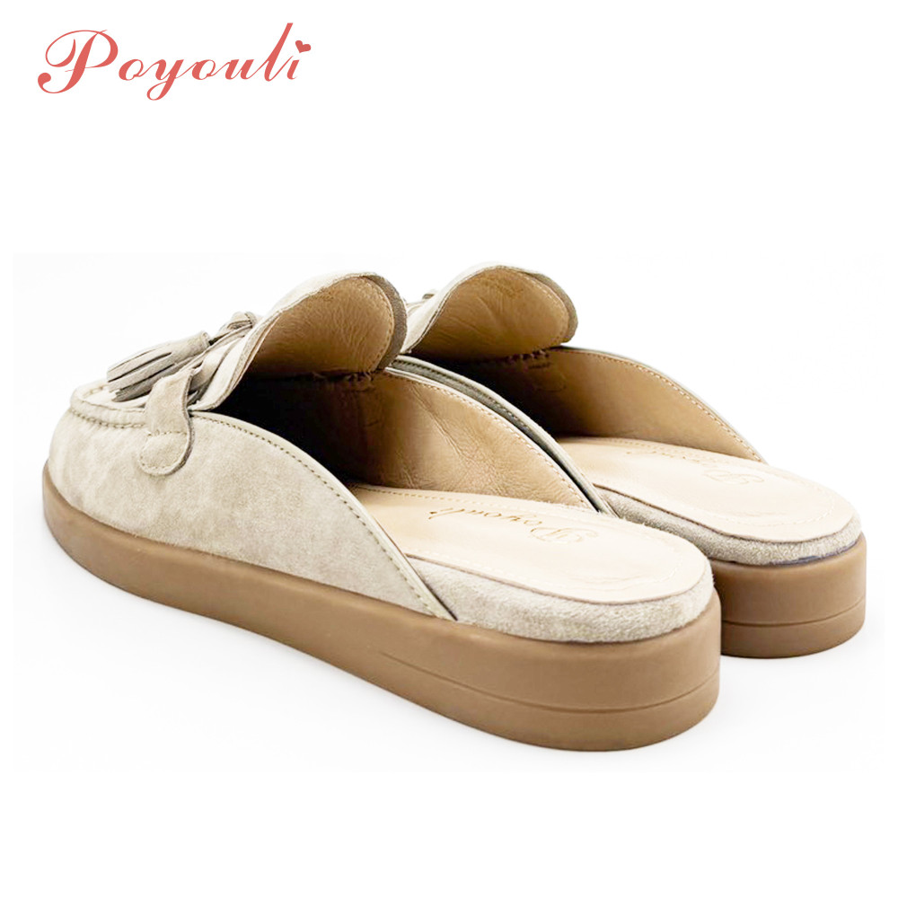 POYOULI帥氣牛仔蝴蝶結流梳平底包鞋-卡其