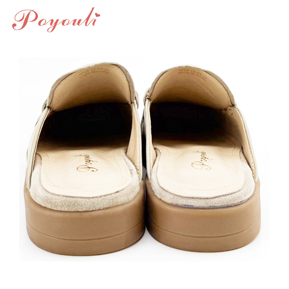 POYOULI素雅牛皮扣環平底包鞋-摩卡棕