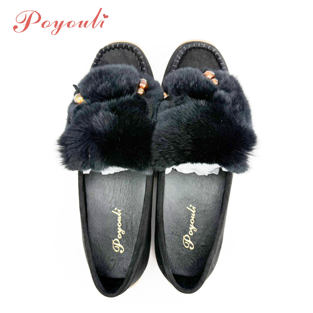- 商品名稱:POYOULI時尚毛絨方圓頭平底包鞋-黑