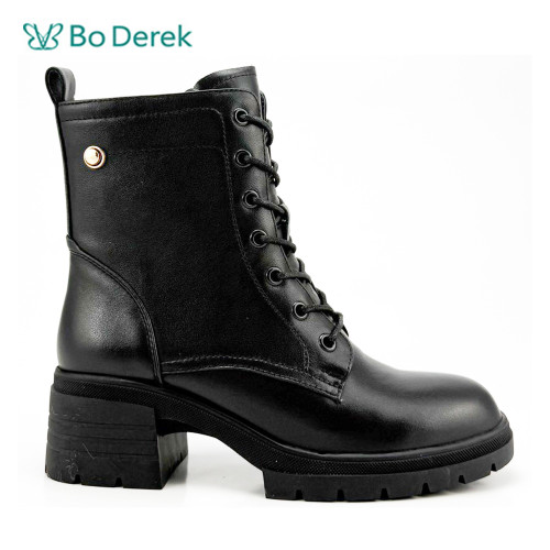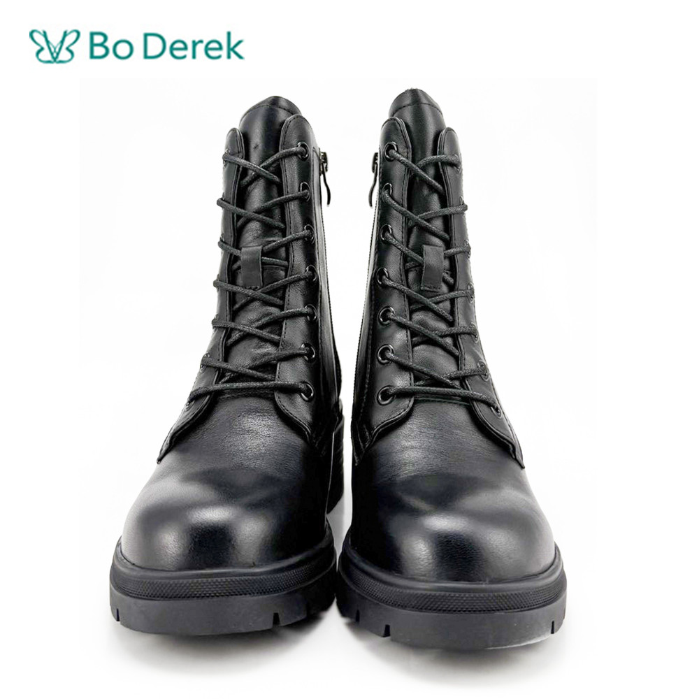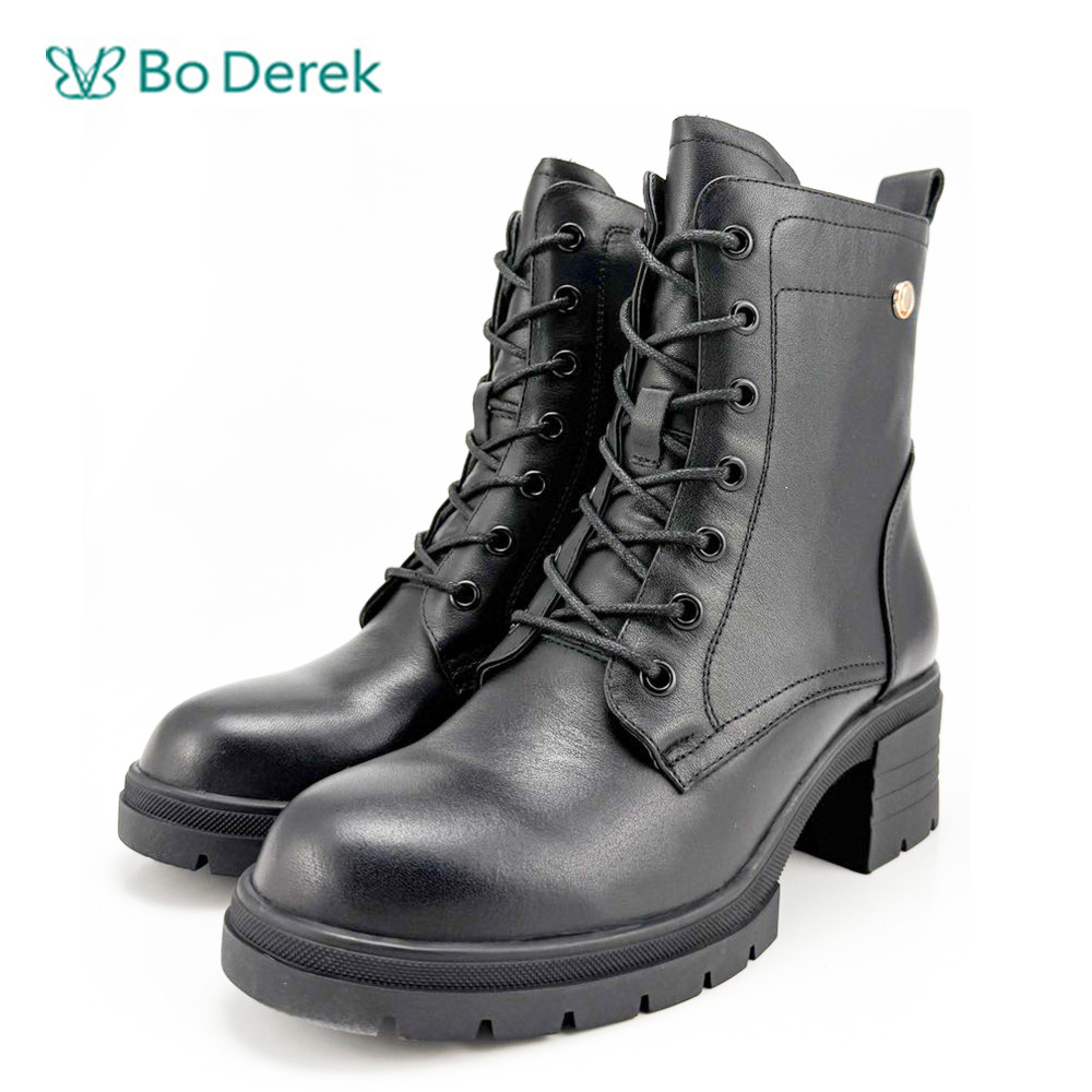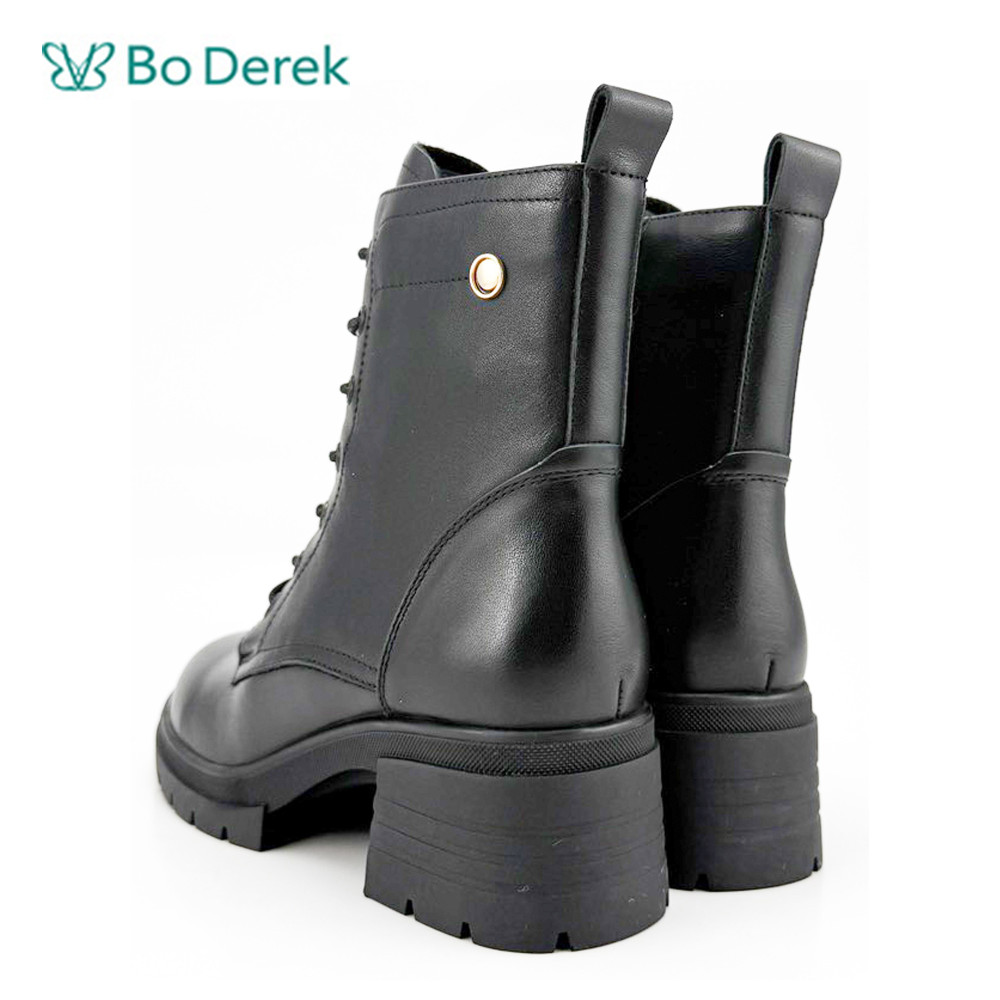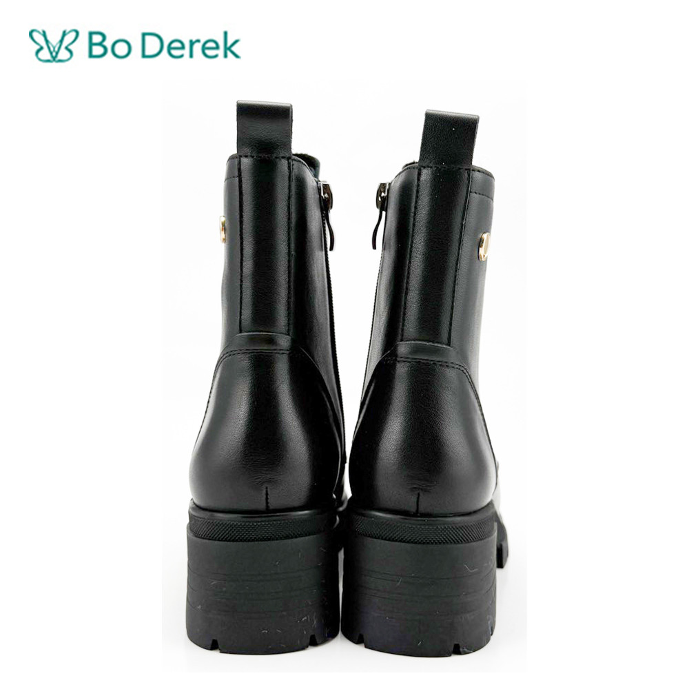 Bo Derek個性女孩牛皮綁帶短靴-黑