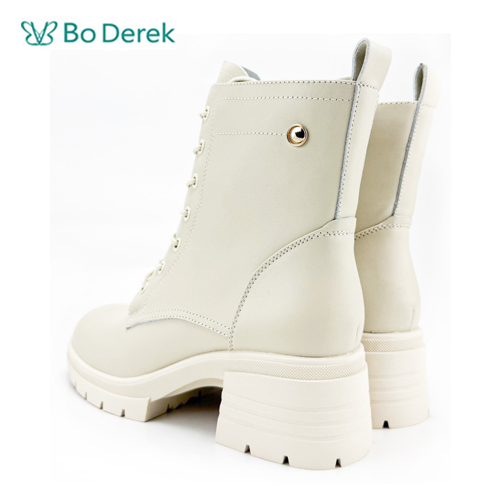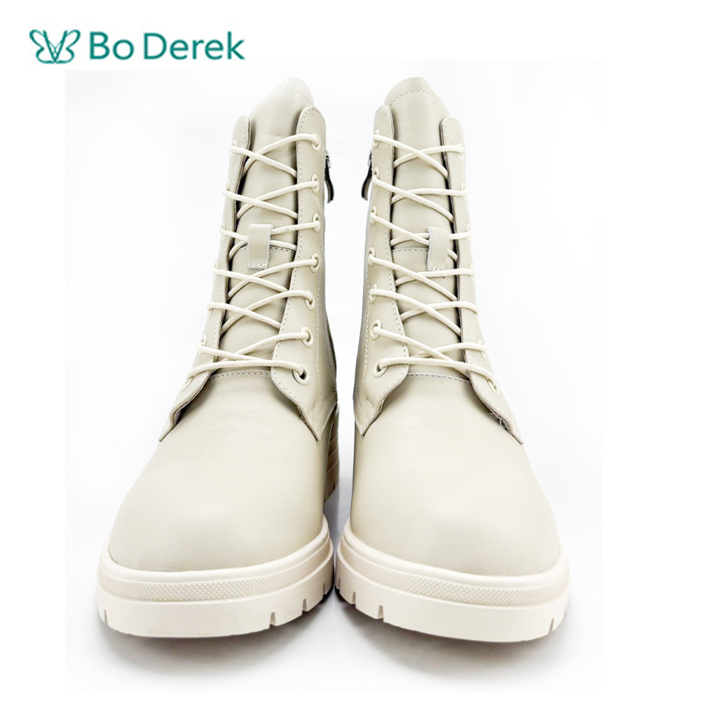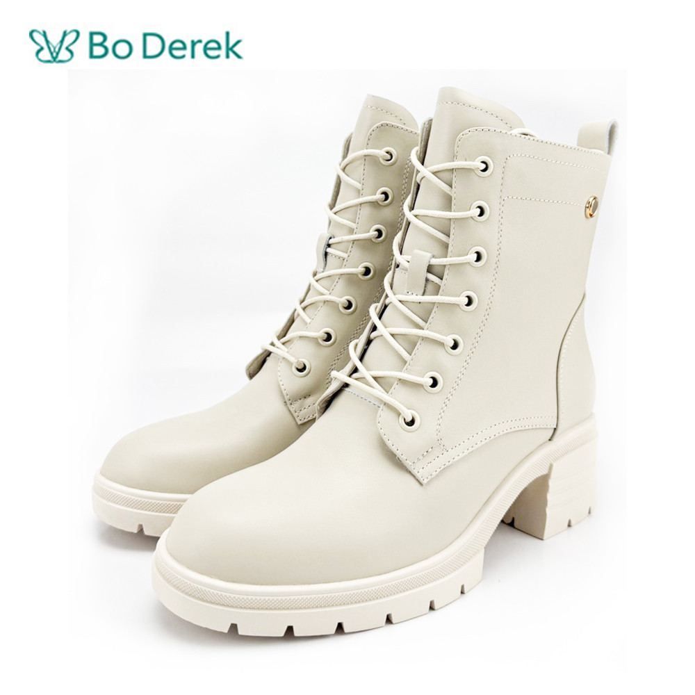 Bo Derek個性女孩牛皮綁帶短靴-米白