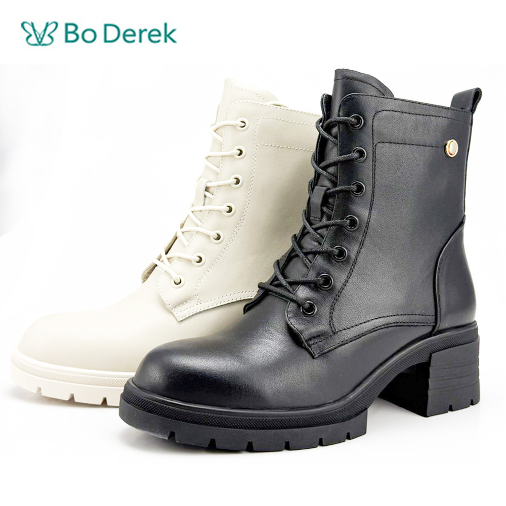 Bo Derek素雅百搭厚底牛皮短靴-黑