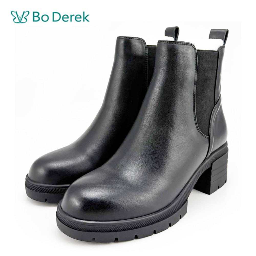 Bo Derek素雅百搭厚底牛皮短靴-黑