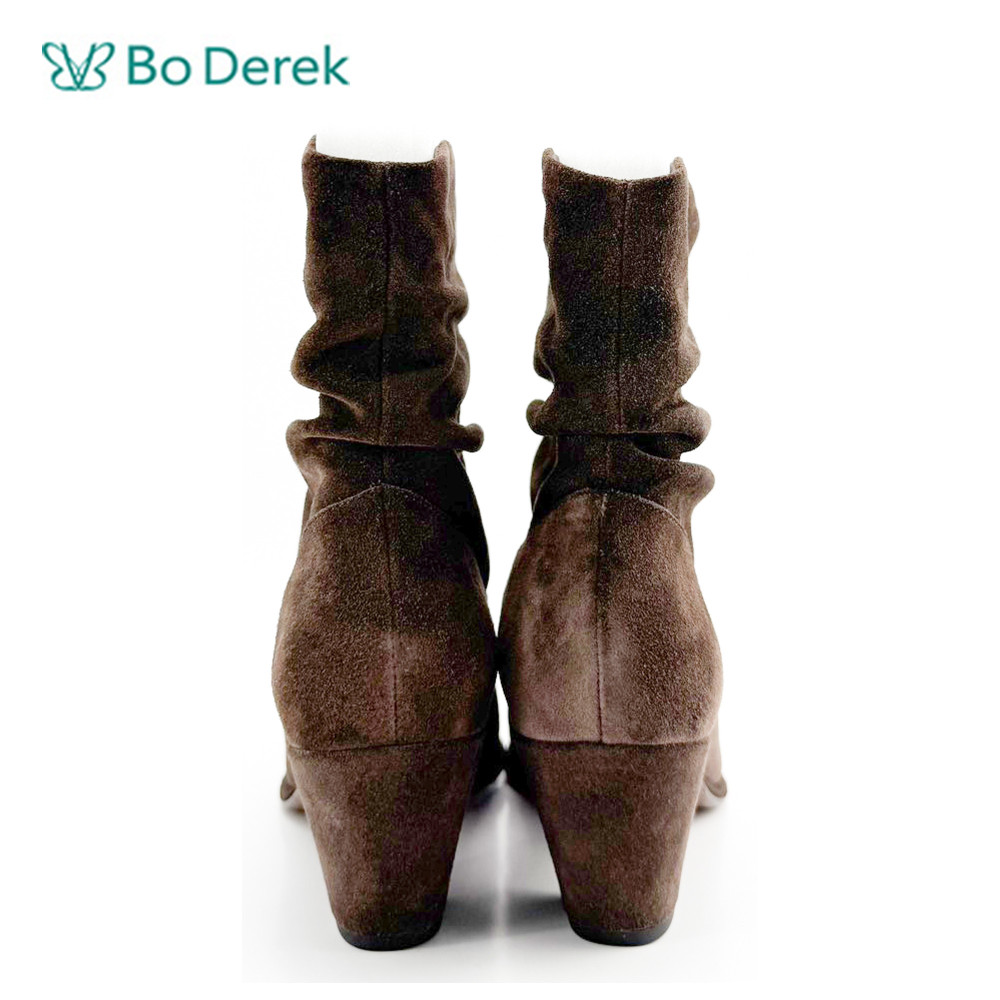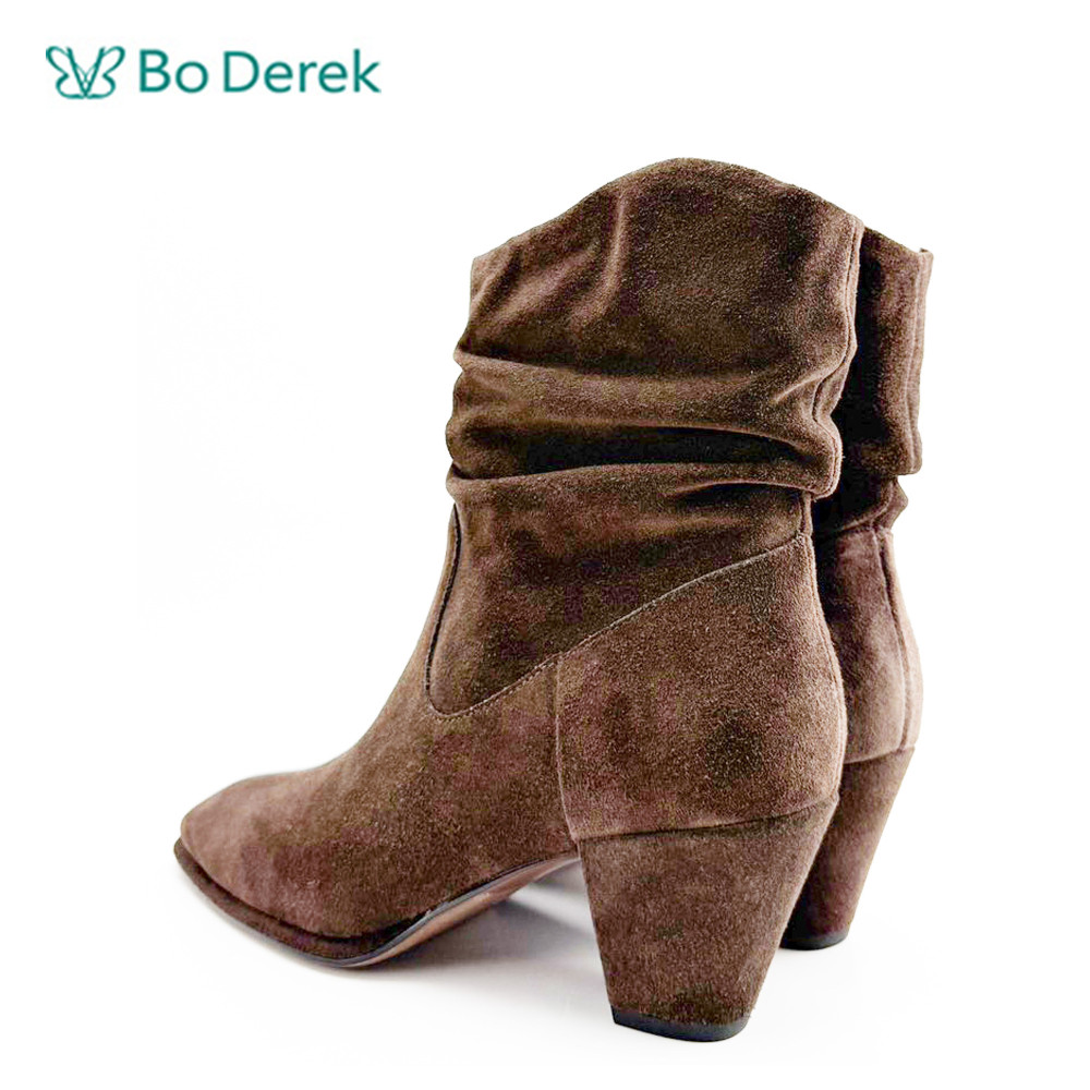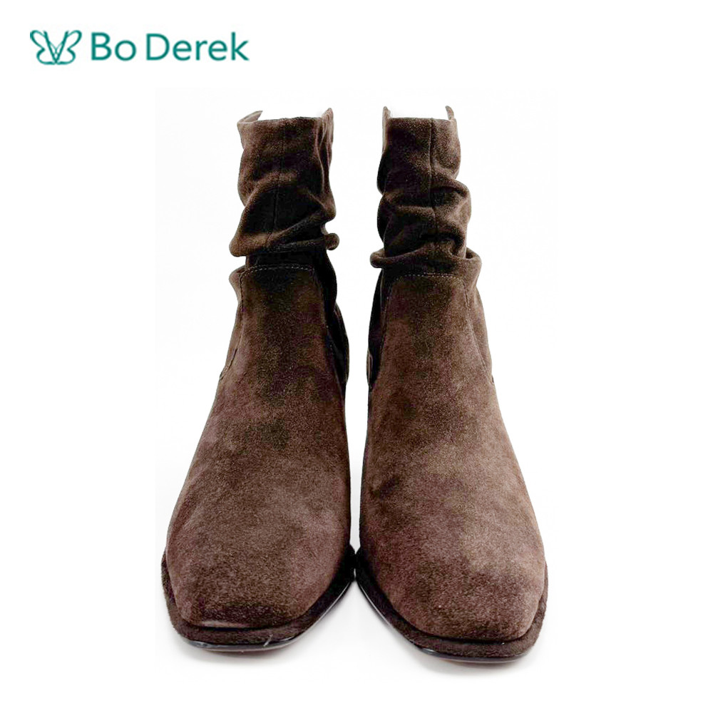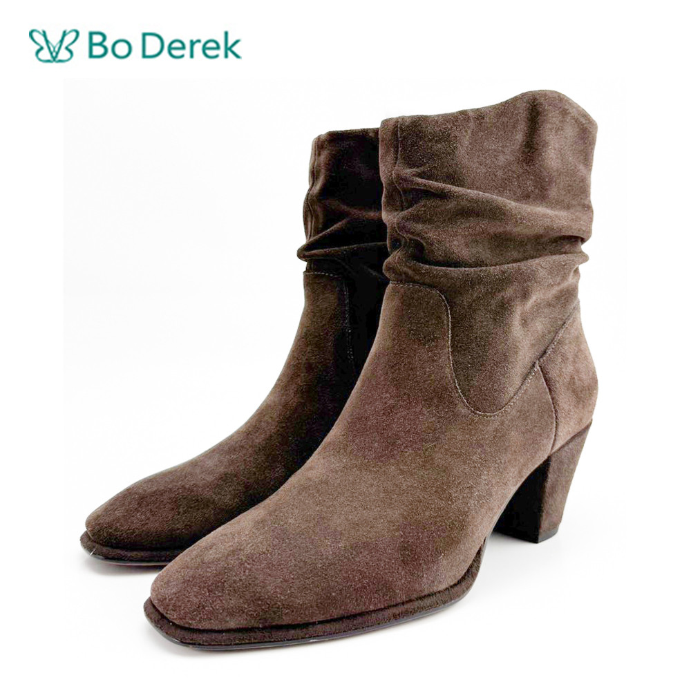 Bo Derek復古個性抓皺中跟短靴-咖啡