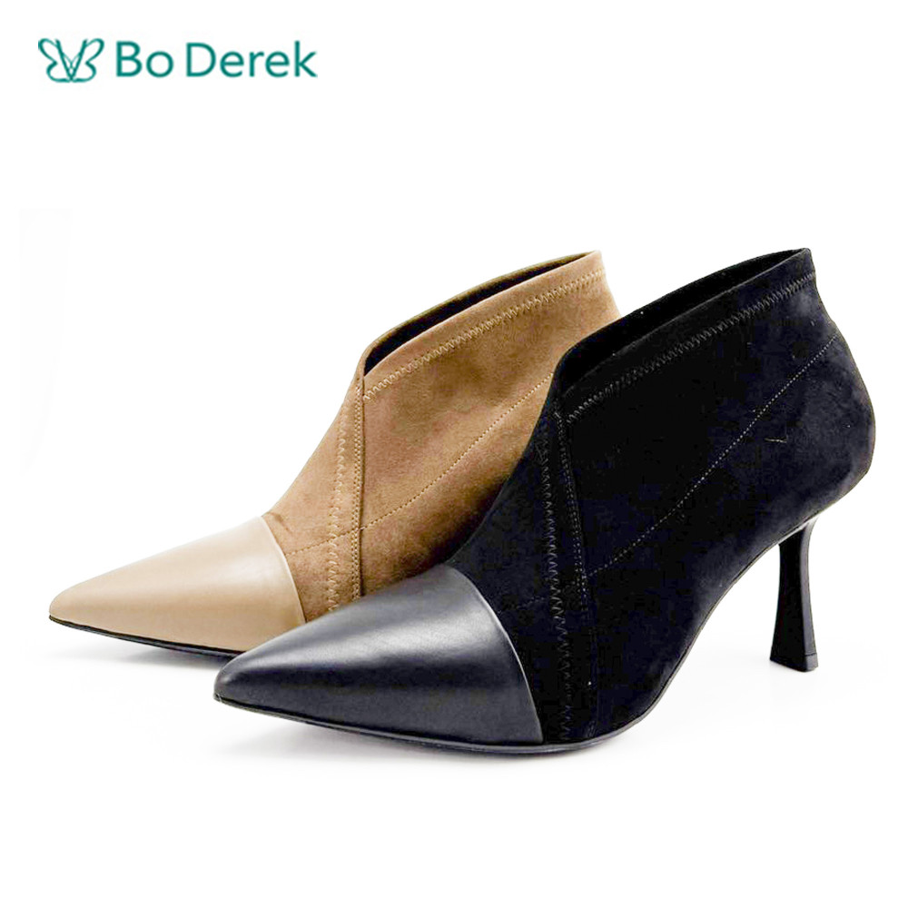 Poyouli 顯瘦感尖頭粗跟長靴-霧面黑