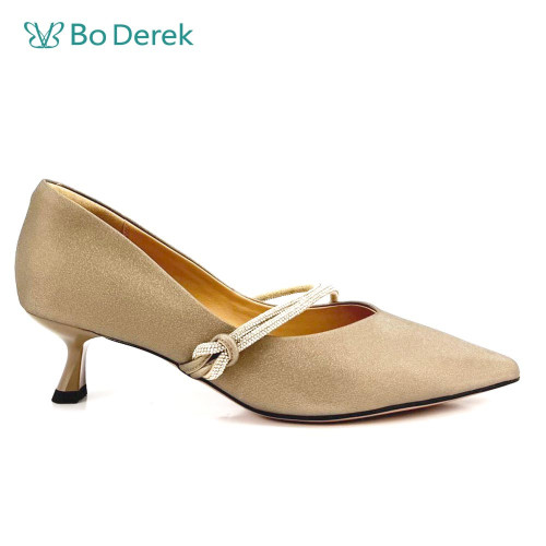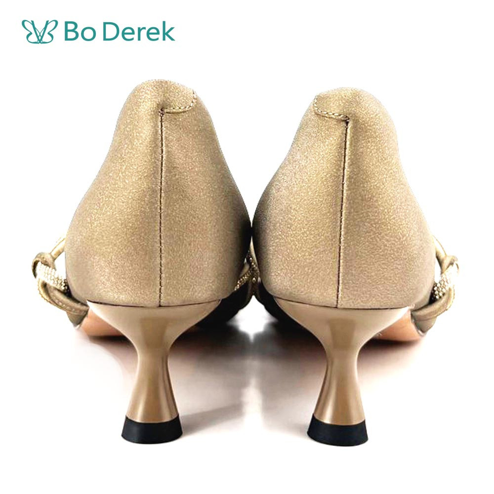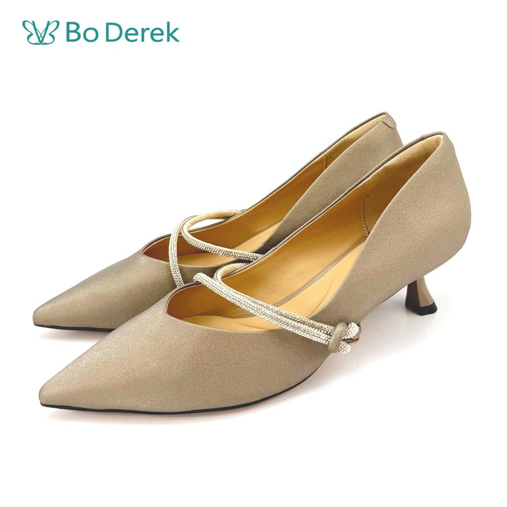 Bo Derek低調素雅亮條尖頭中跟鞋-杏