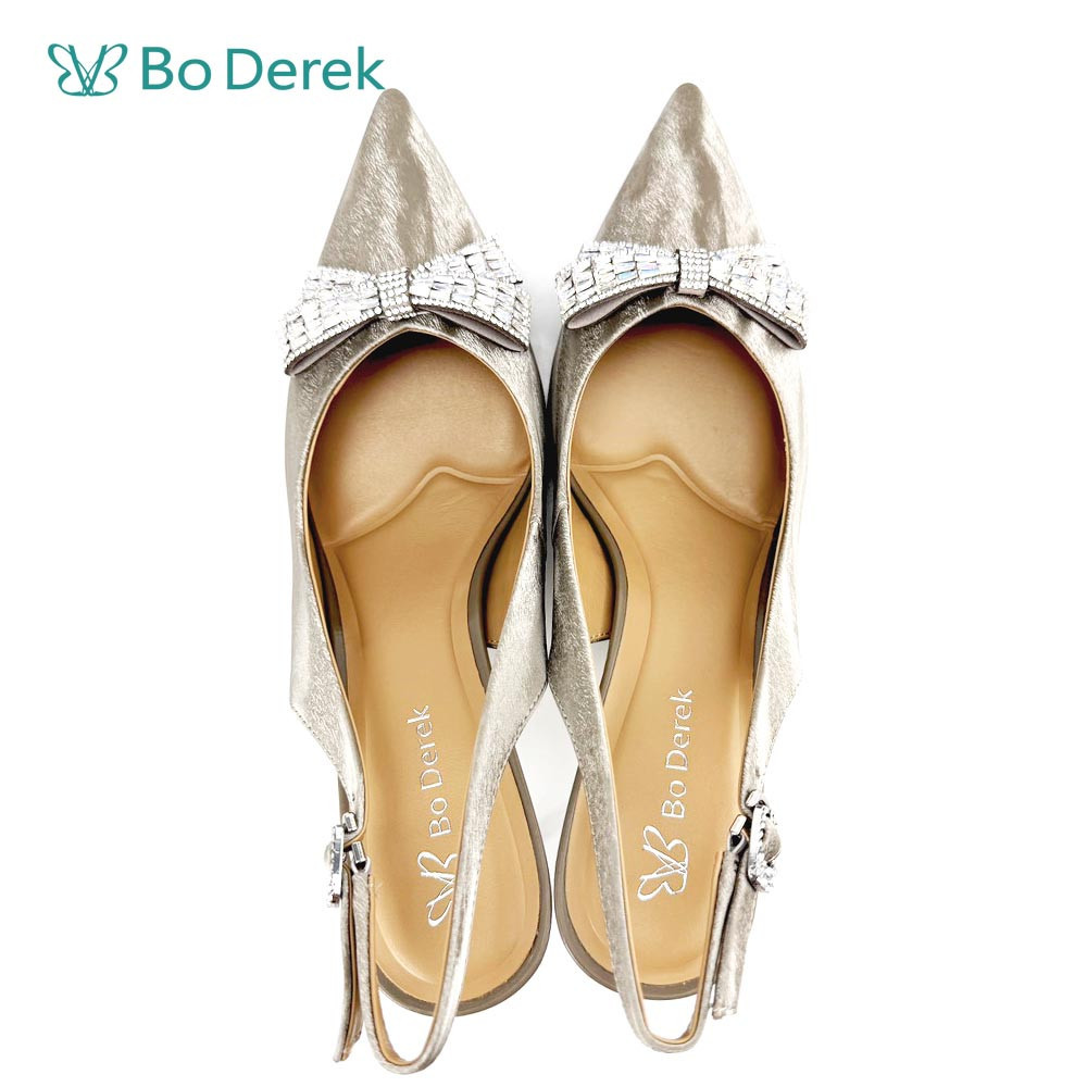 Bo Derek高級可愛閃鑽蝴蝶結中跟鞋-香檳