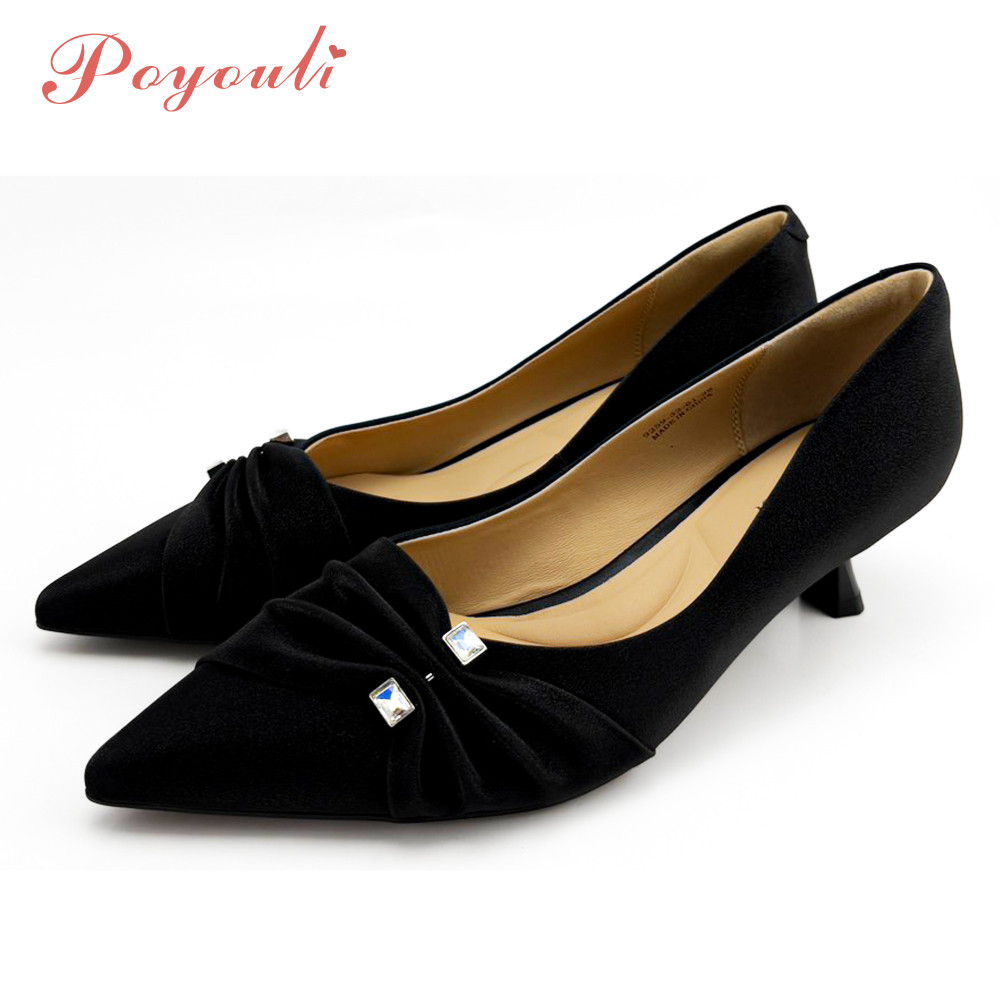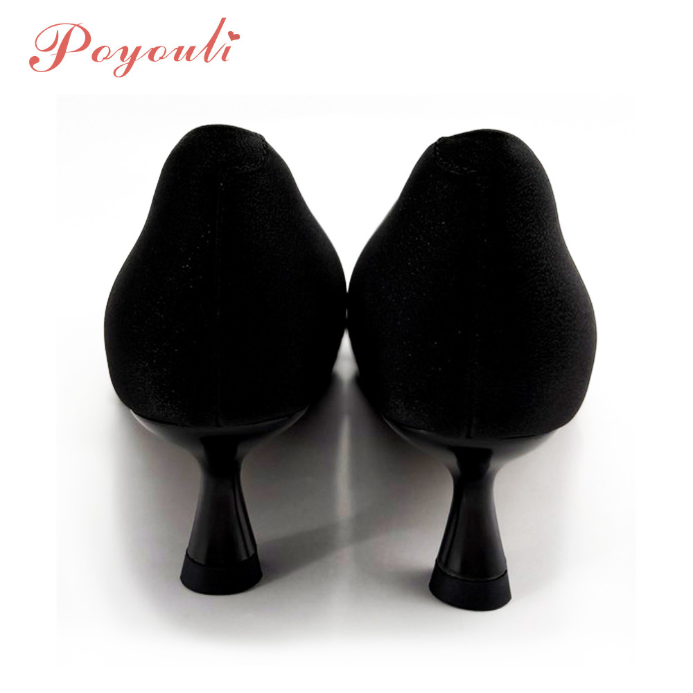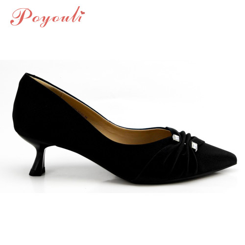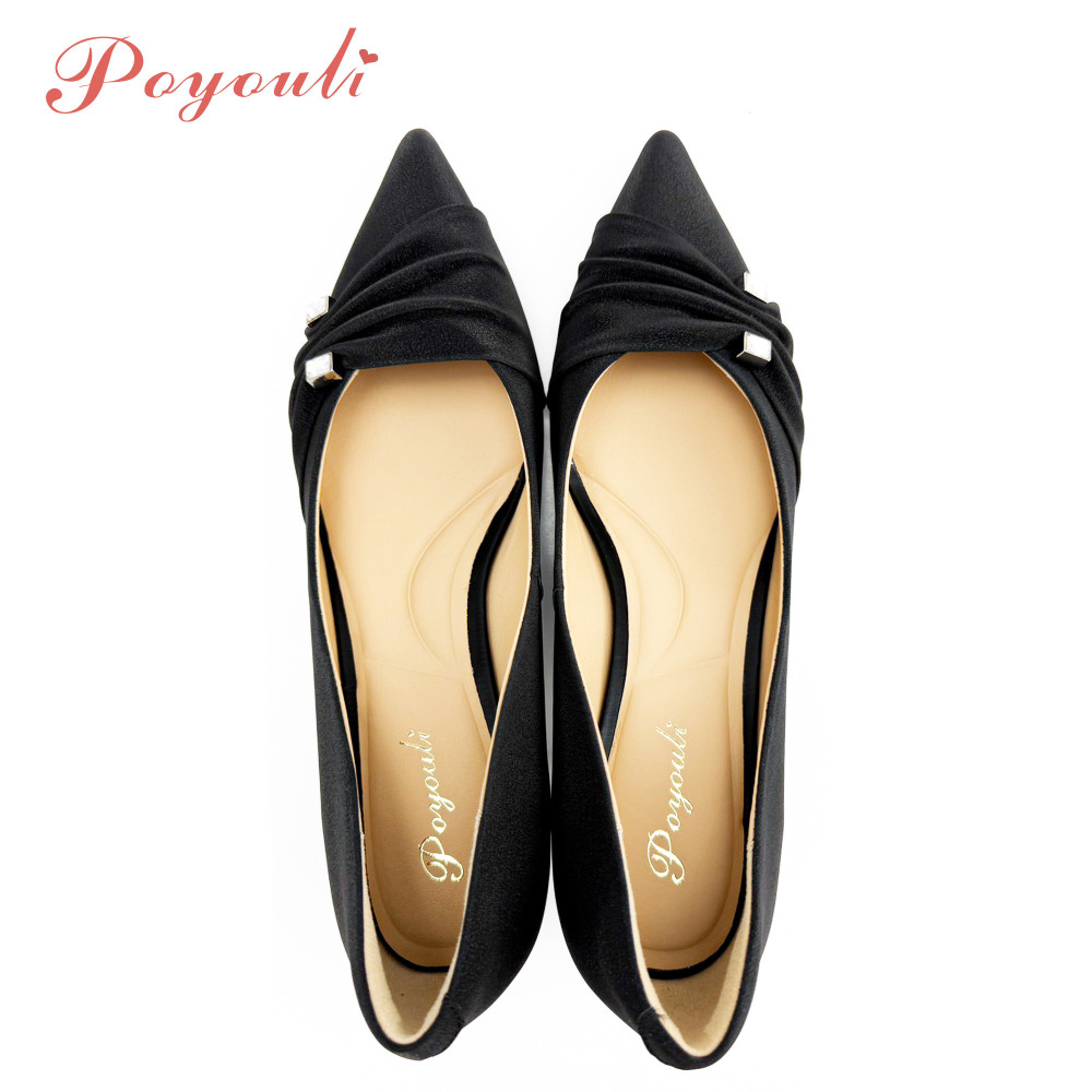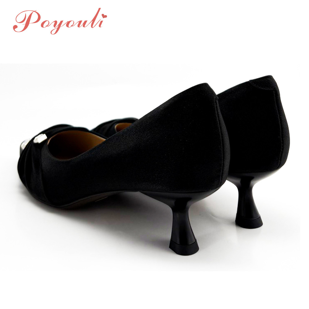 POYOULI尖頭抓皺時尚感中跟鞋-黑