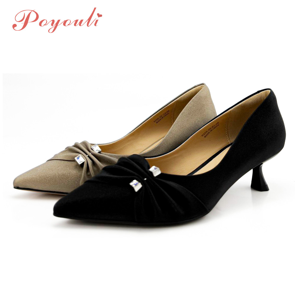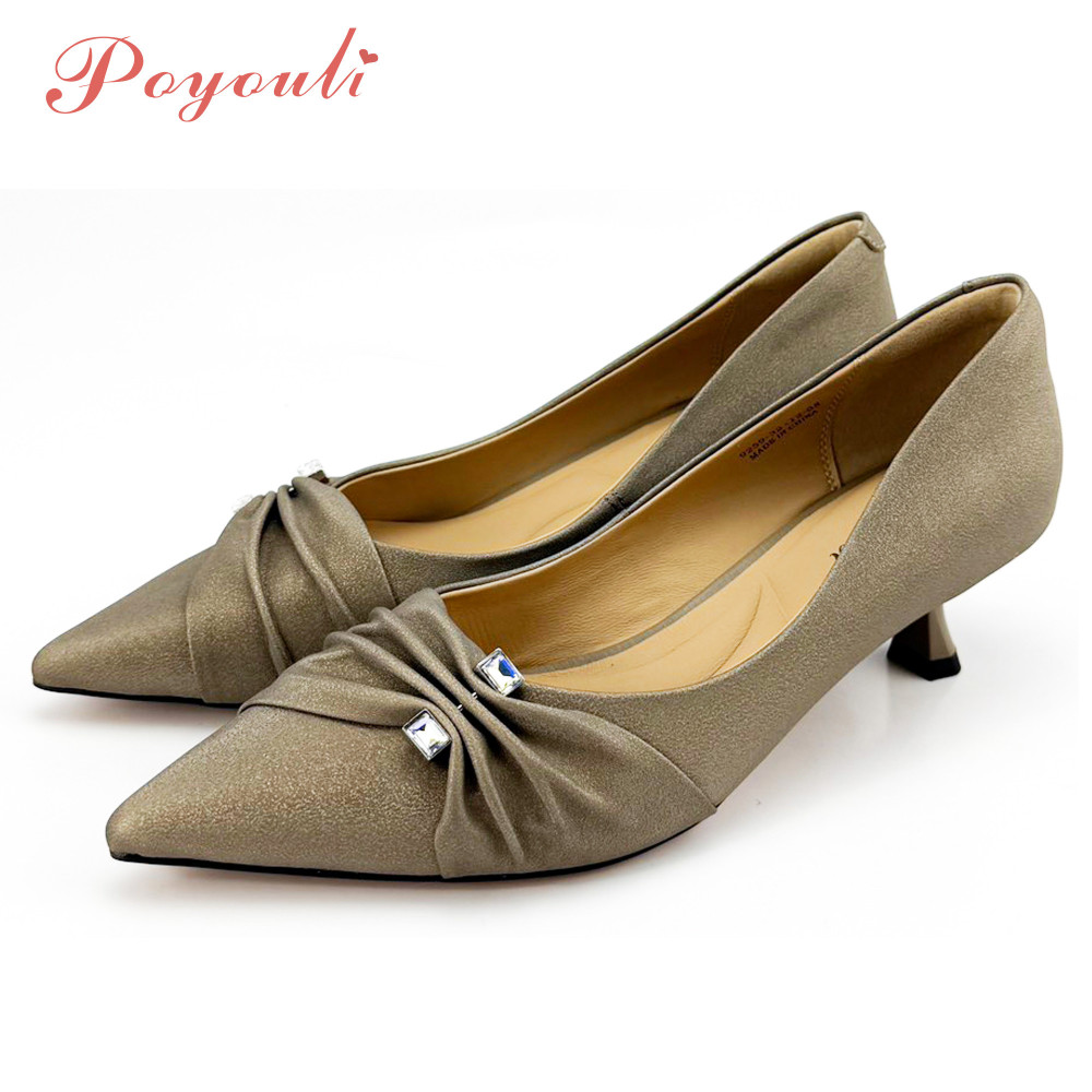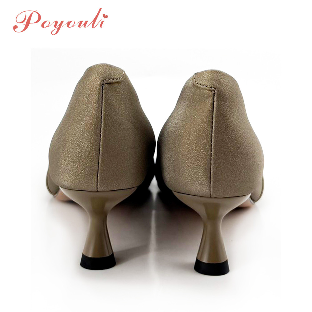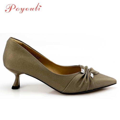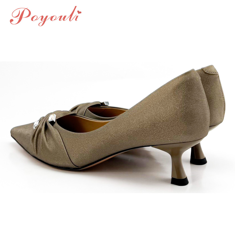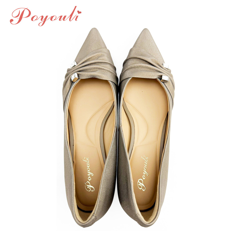 POYOULI尖頭抓皺時尚感中跟鞋-杏