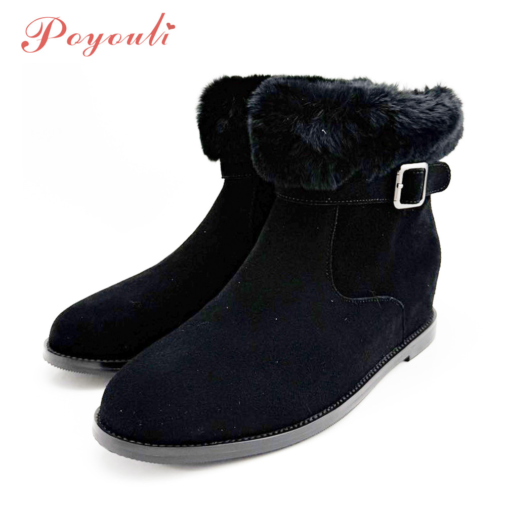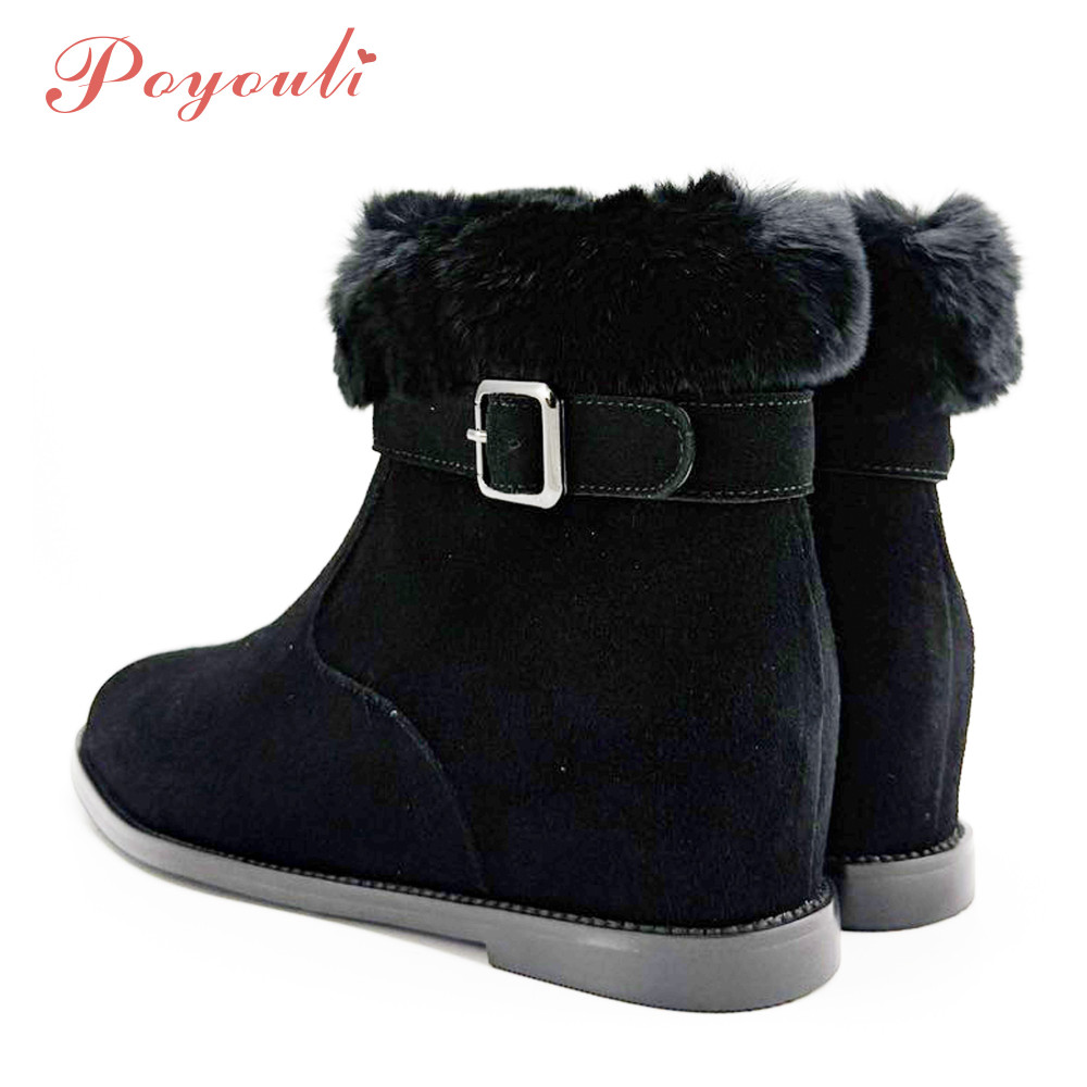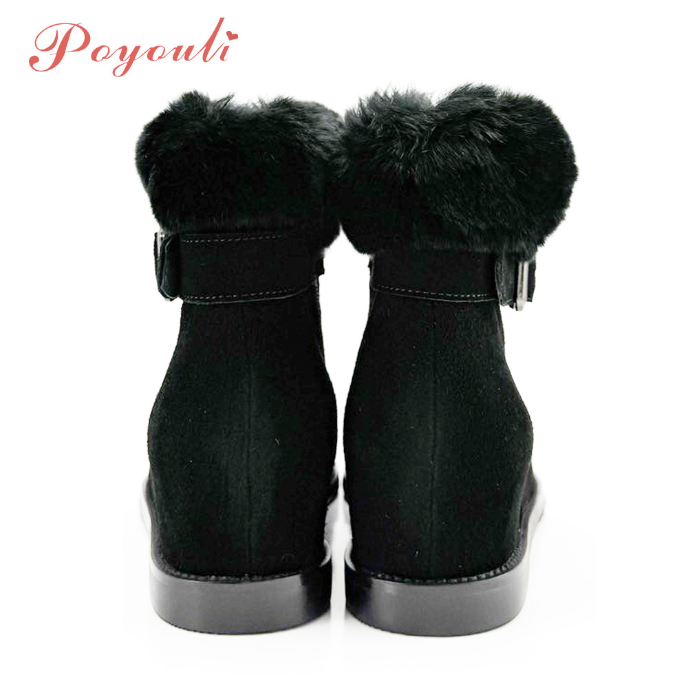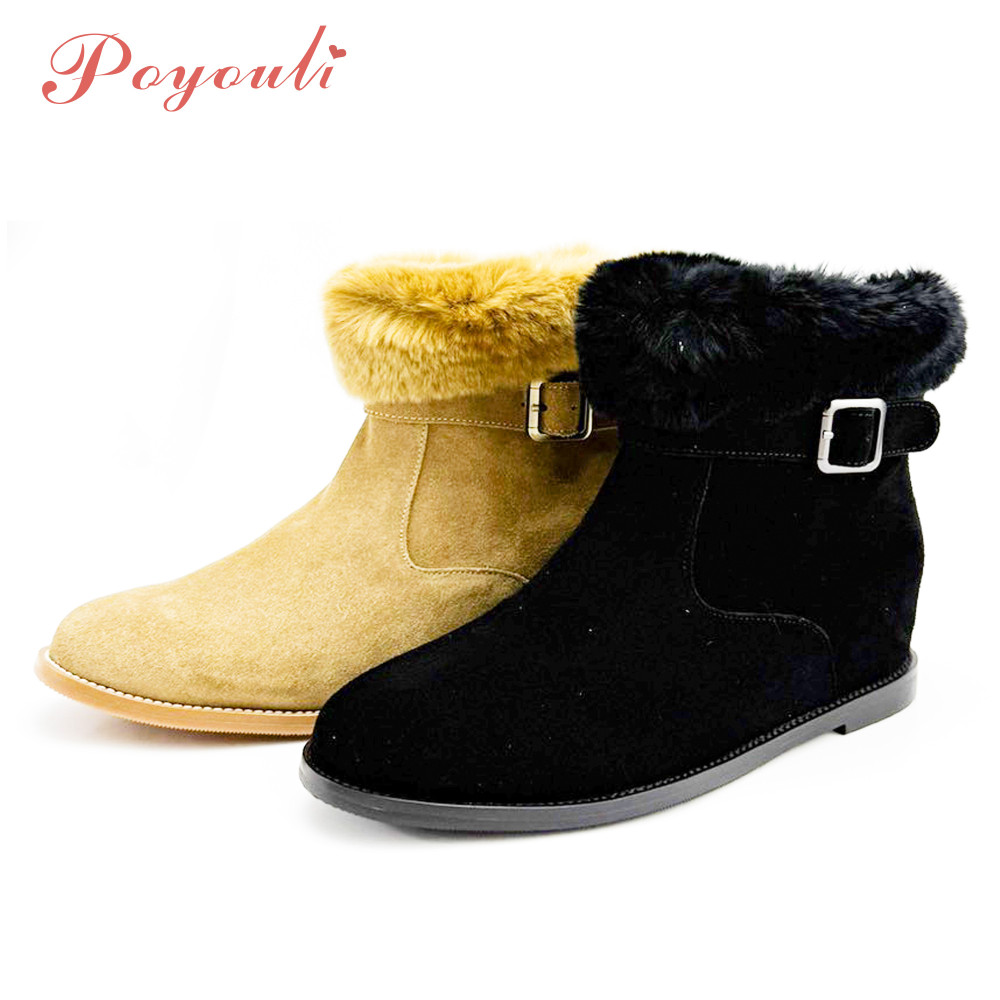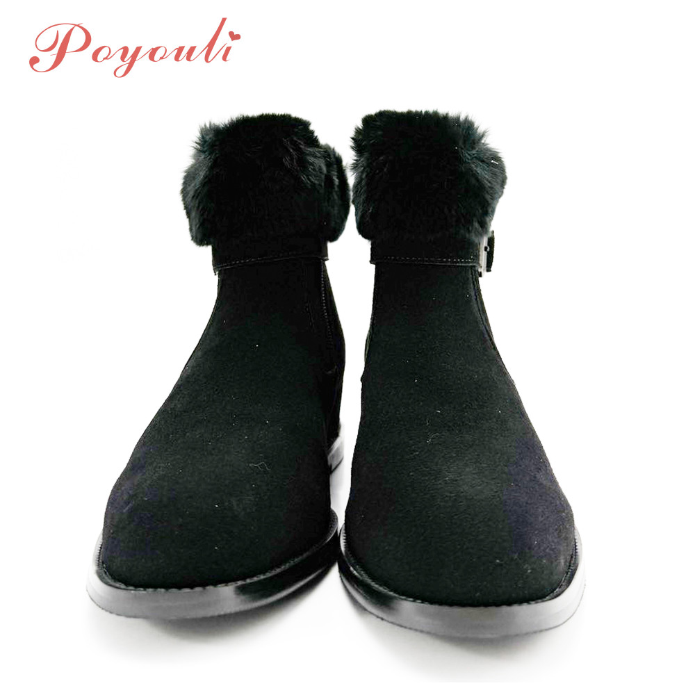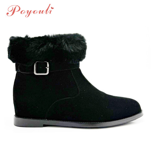 POYOULI雪地方形扣毛絨短靴-淺棕