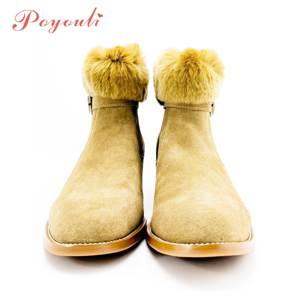 - 商品名稱:POYOULI雪地方形扣毛絨短靴-淺棕