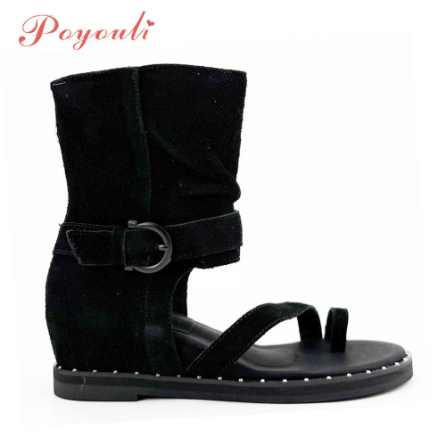 POYOULI高雅時尚尖頭襪型短靴-黑