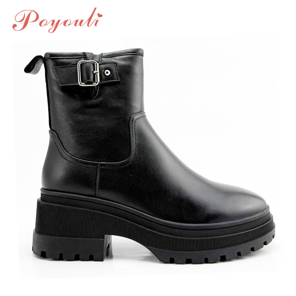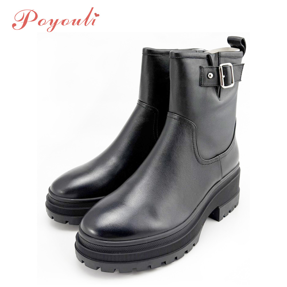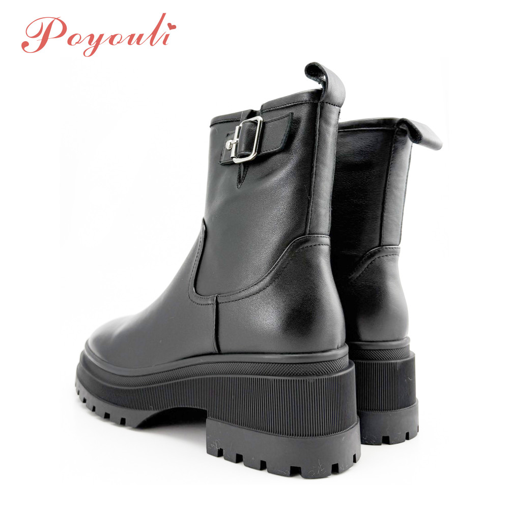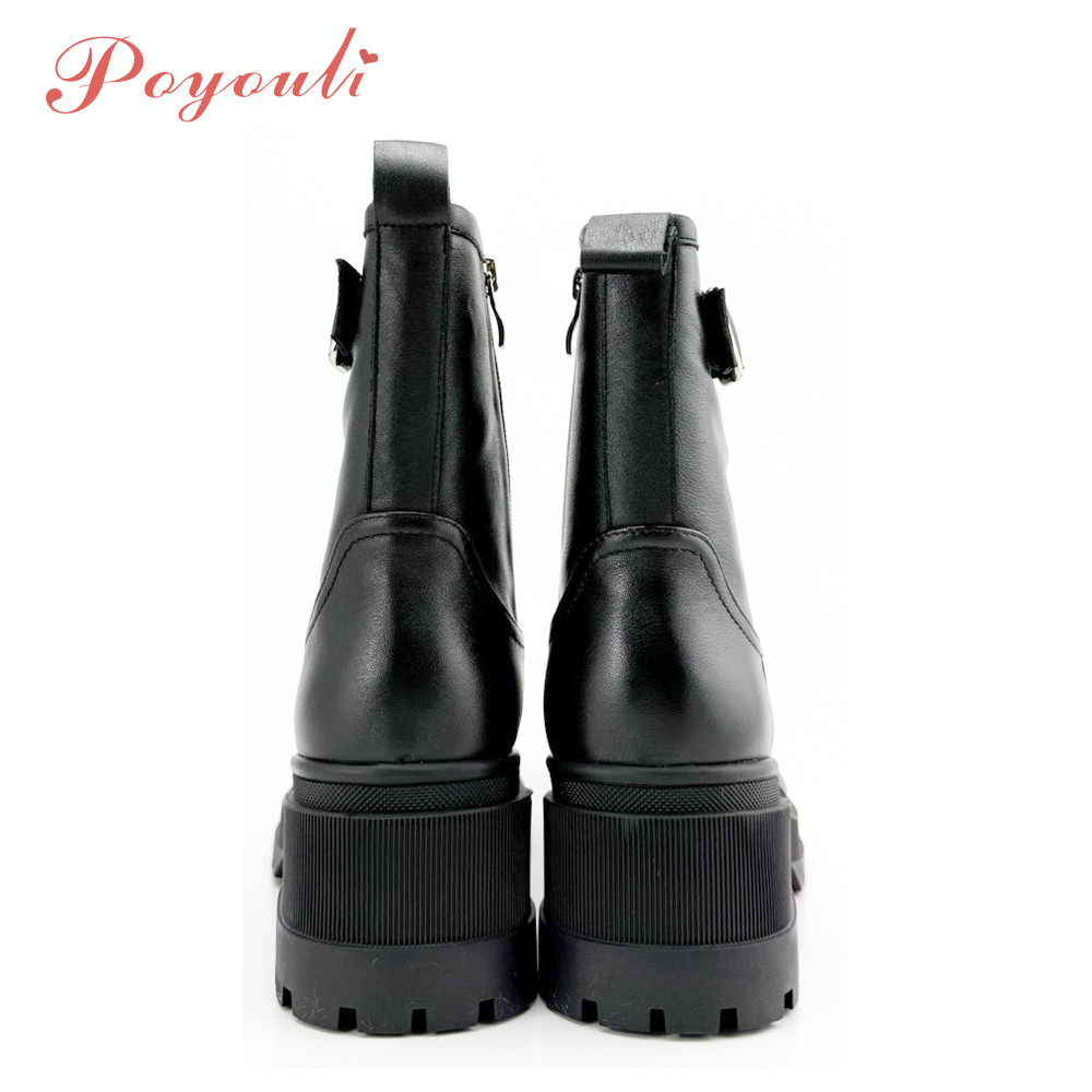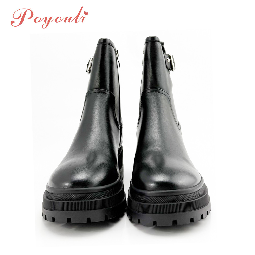 POYOULI高級素雅牛皮方形扣短靴-黑