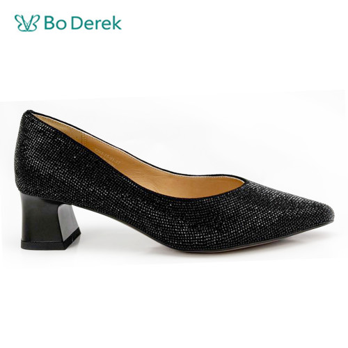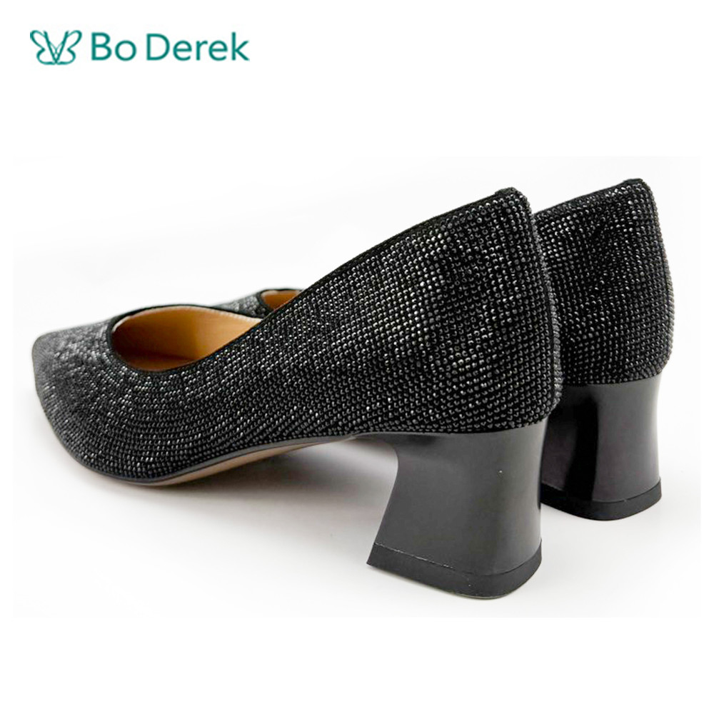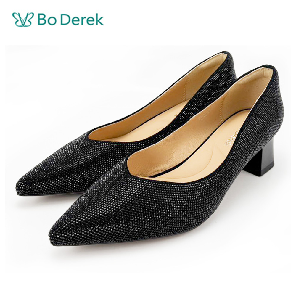 Bo Derek奢華素雅燙鑽尖頭中跟鞋-黑
