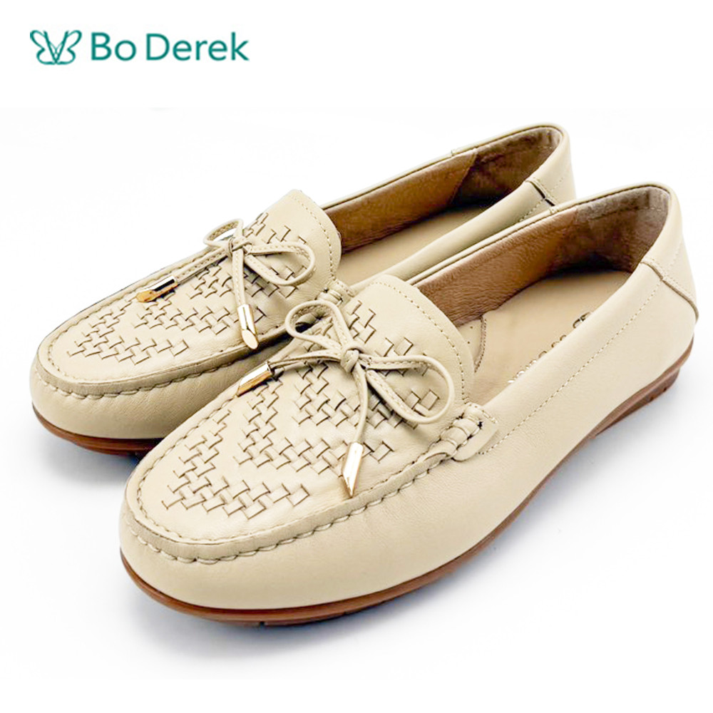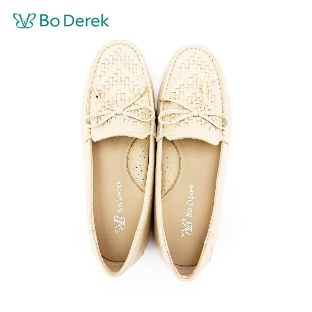 - 商品名稱:Bo Derek方頭紋路蝴蝶結平底包鞋-杏