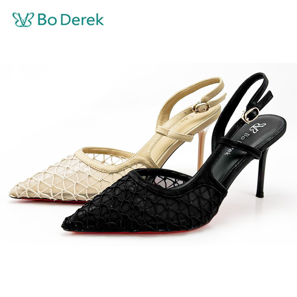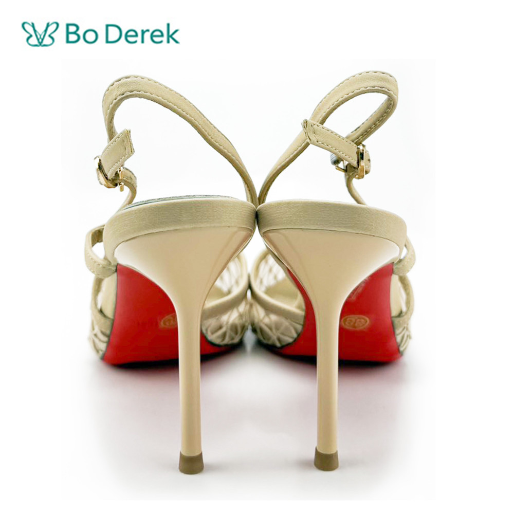 Bo Derek網狀尖頭時尚高跟涼鞋-杏