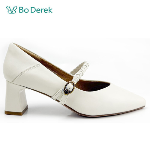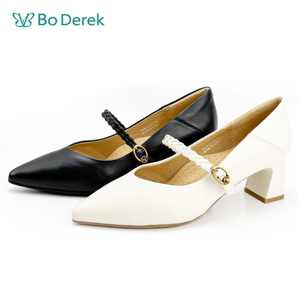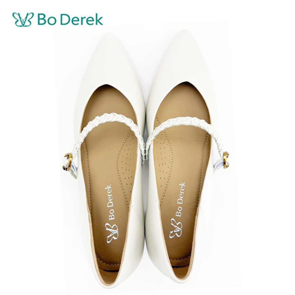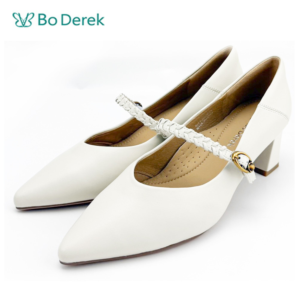 • 商品名稱:Bo Derek時尚尖頭編織鍊條中跟鞋-米白