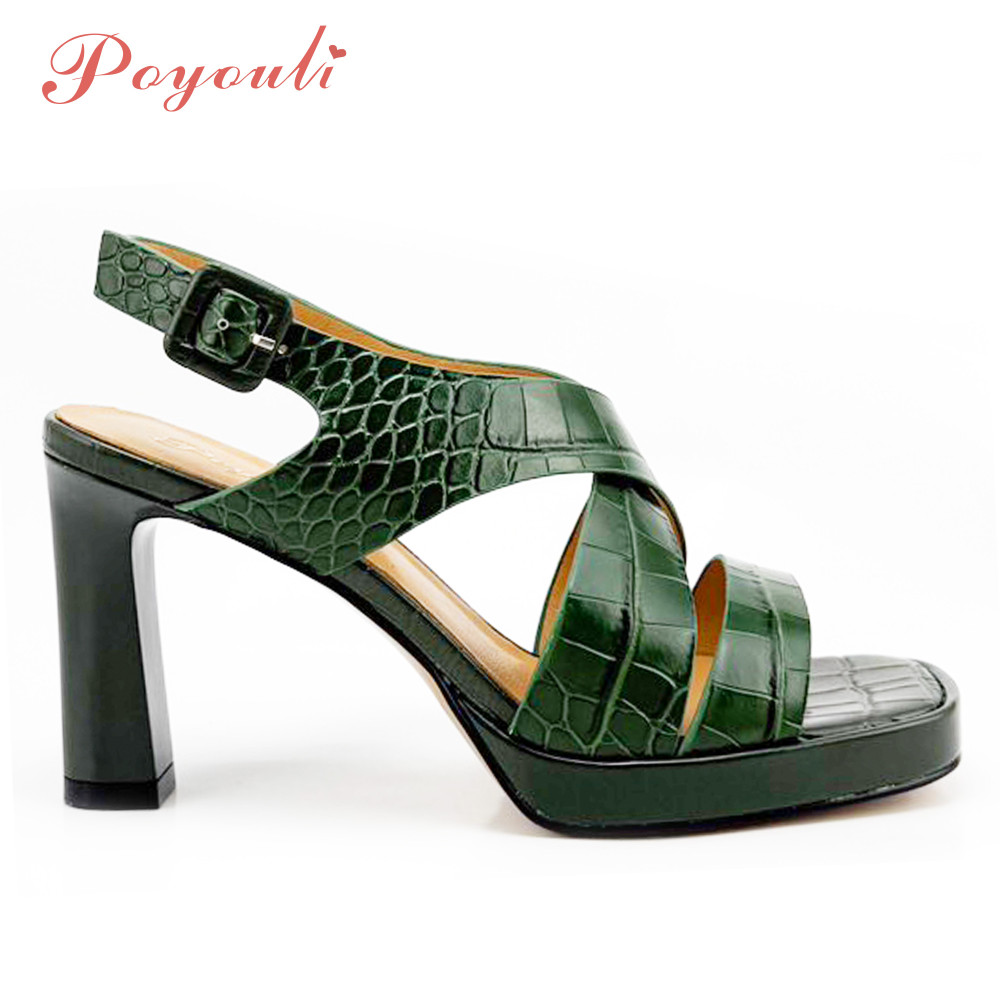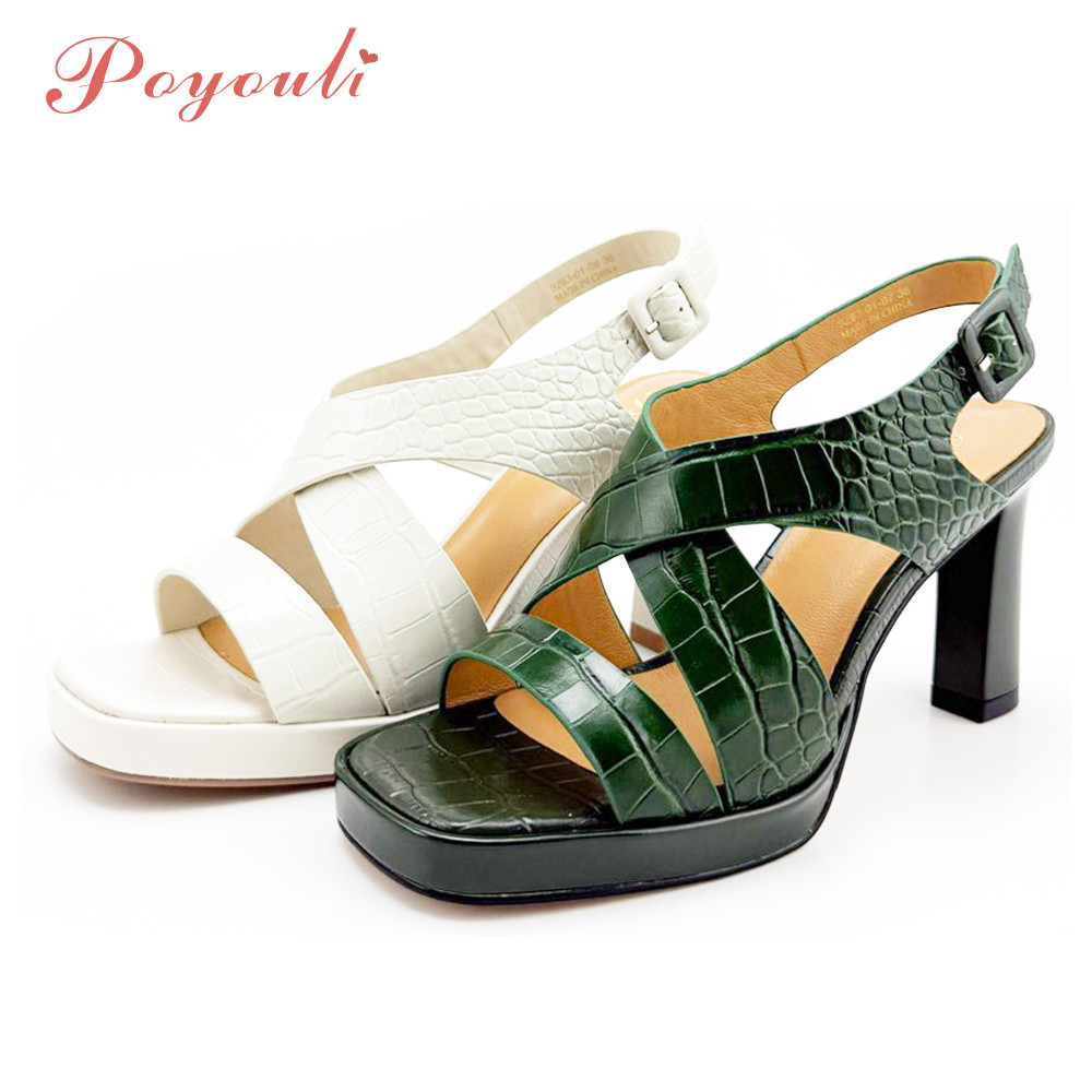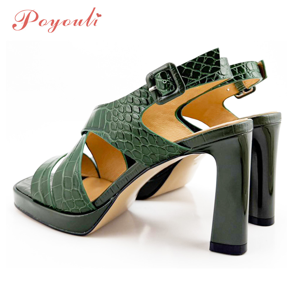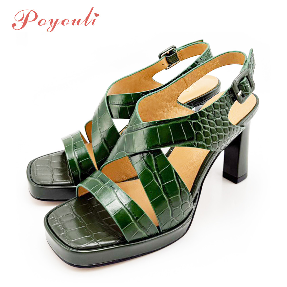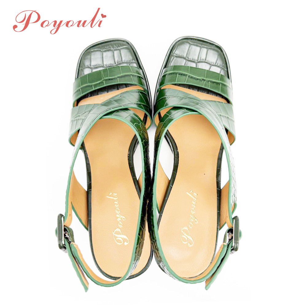 - 商品名稱:POYOULI羅馬石頭紋方頭高跟涼鞋-綠