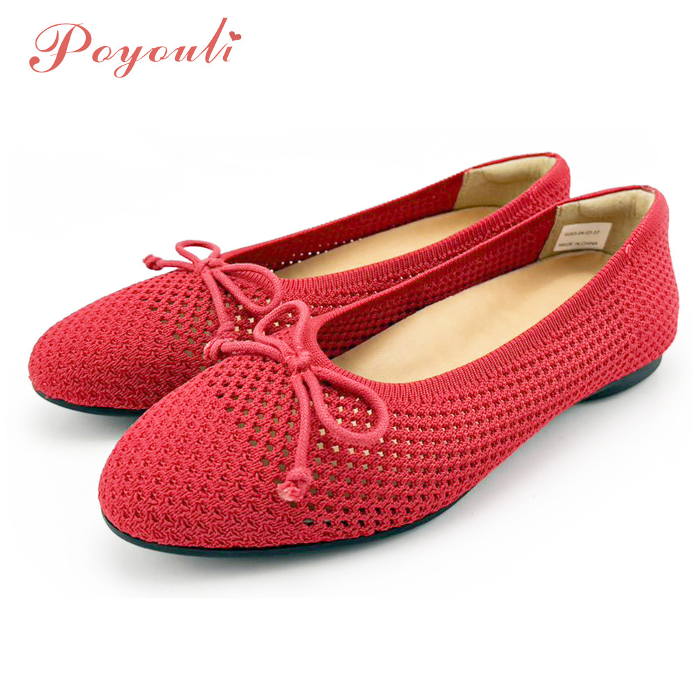 • 商品名稱:POYOULI可愛蝴蝶結網狀平底包鞋-紅