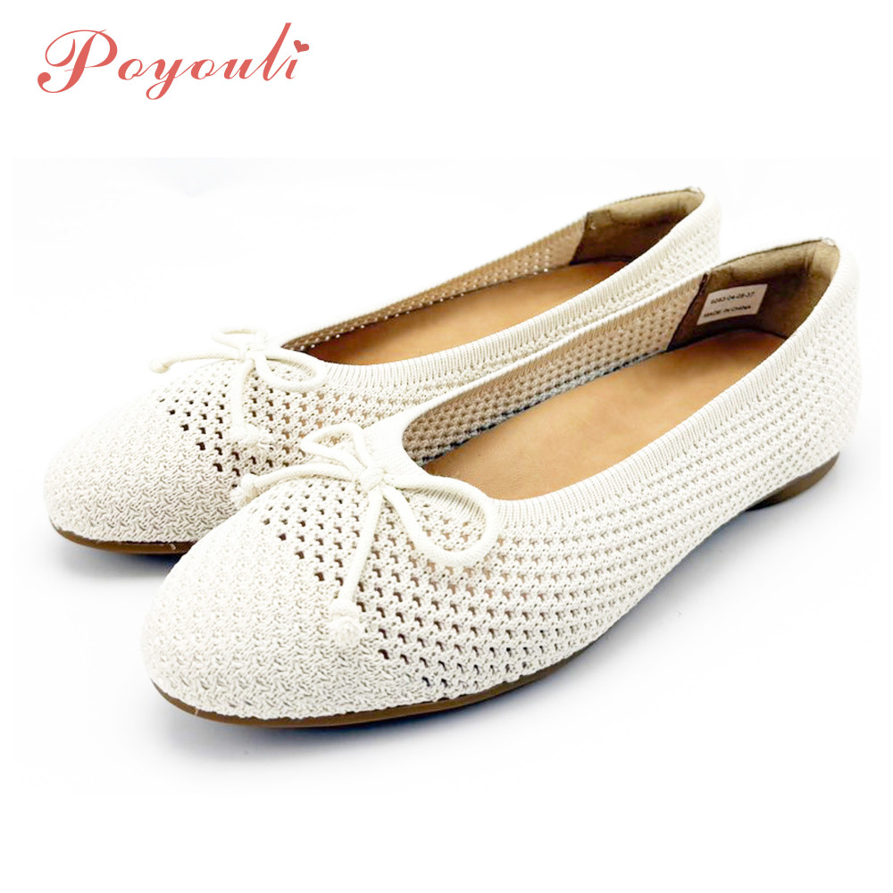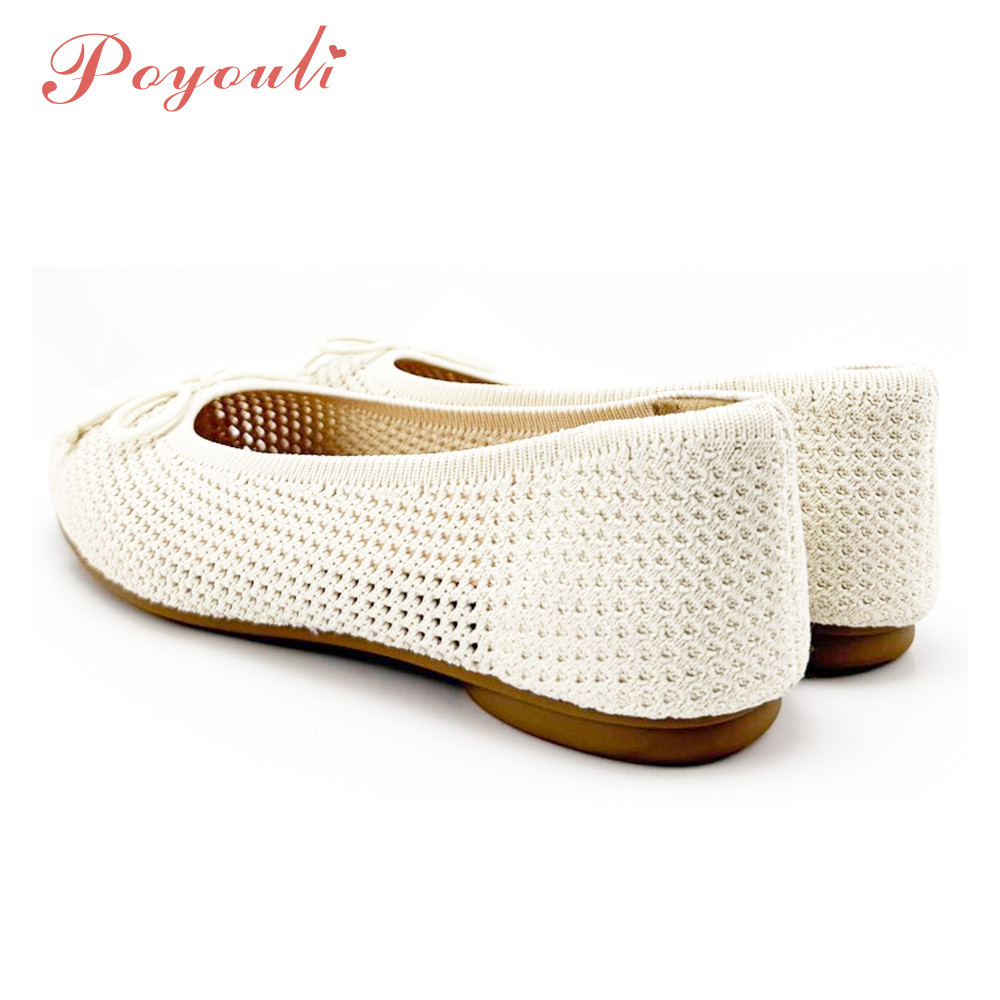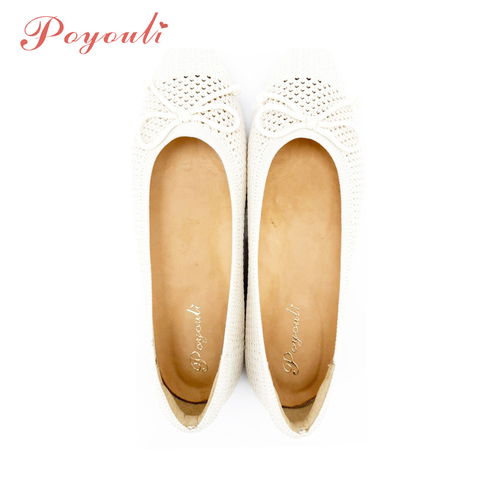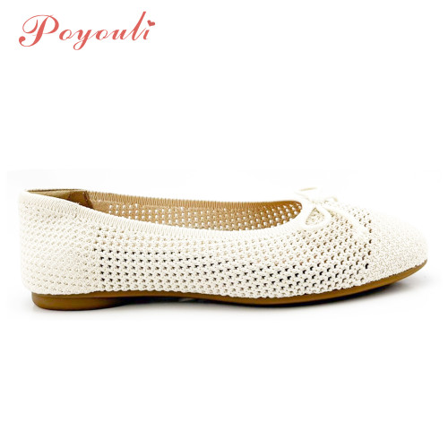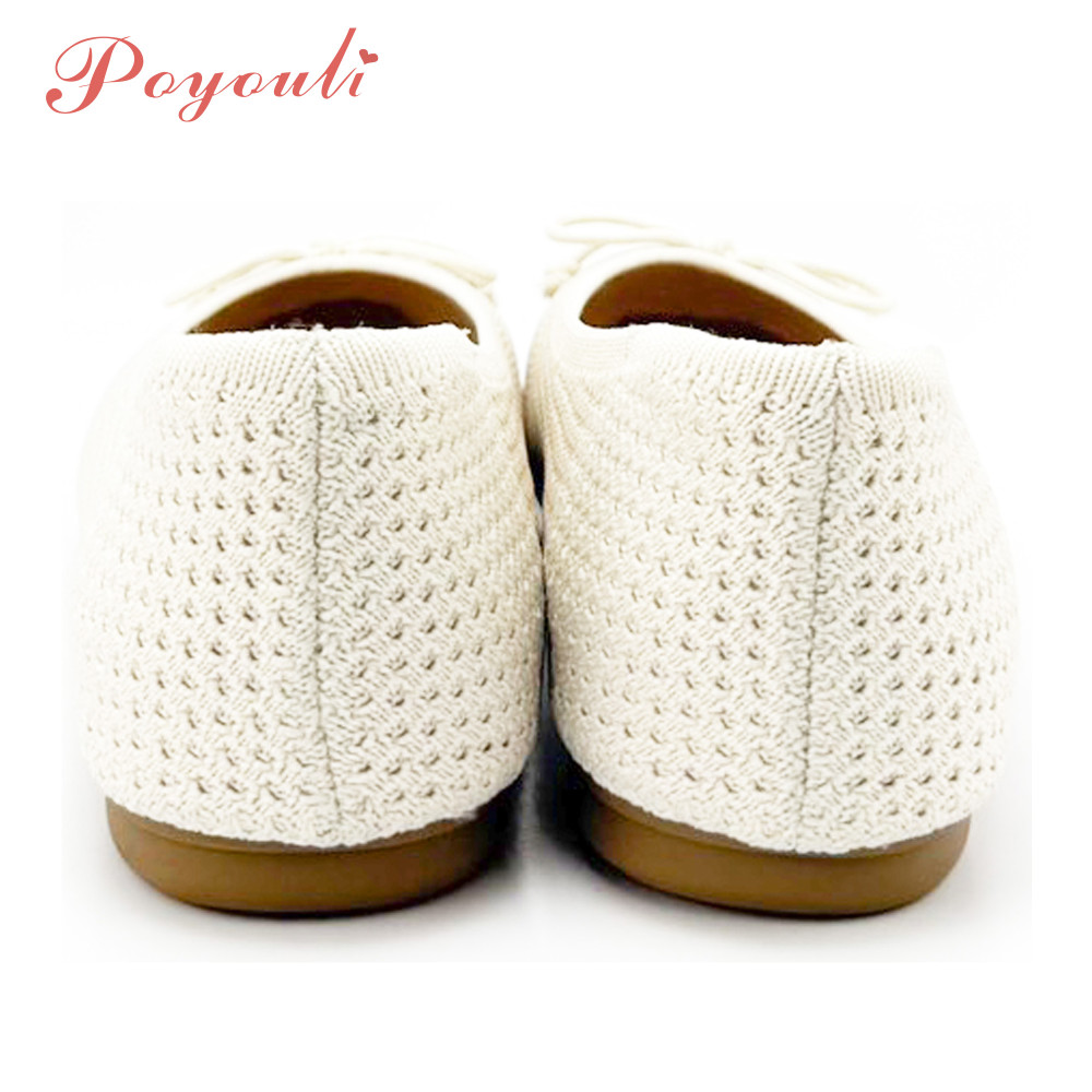 POYOULI可愛蝴蝶結網狀平底包鞋-米白