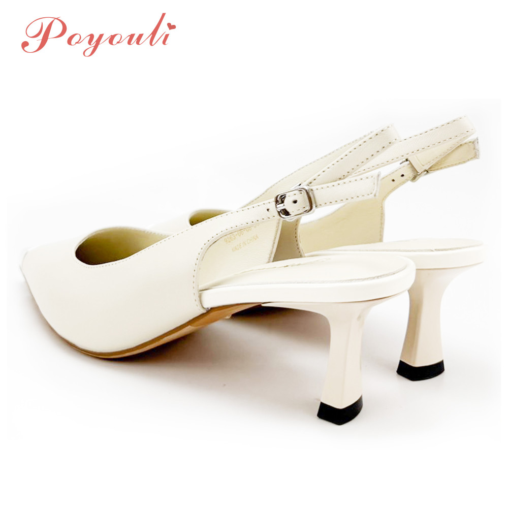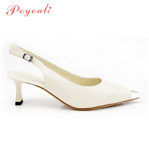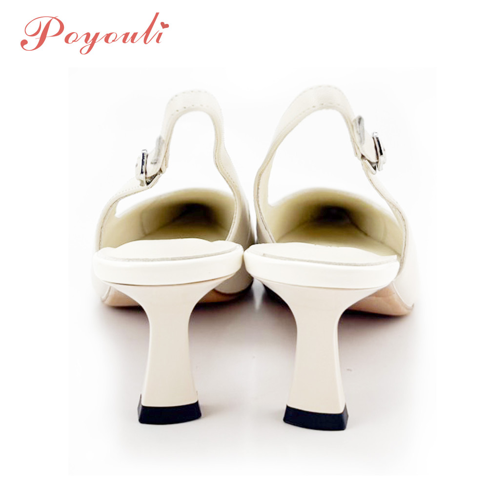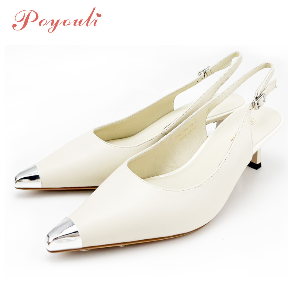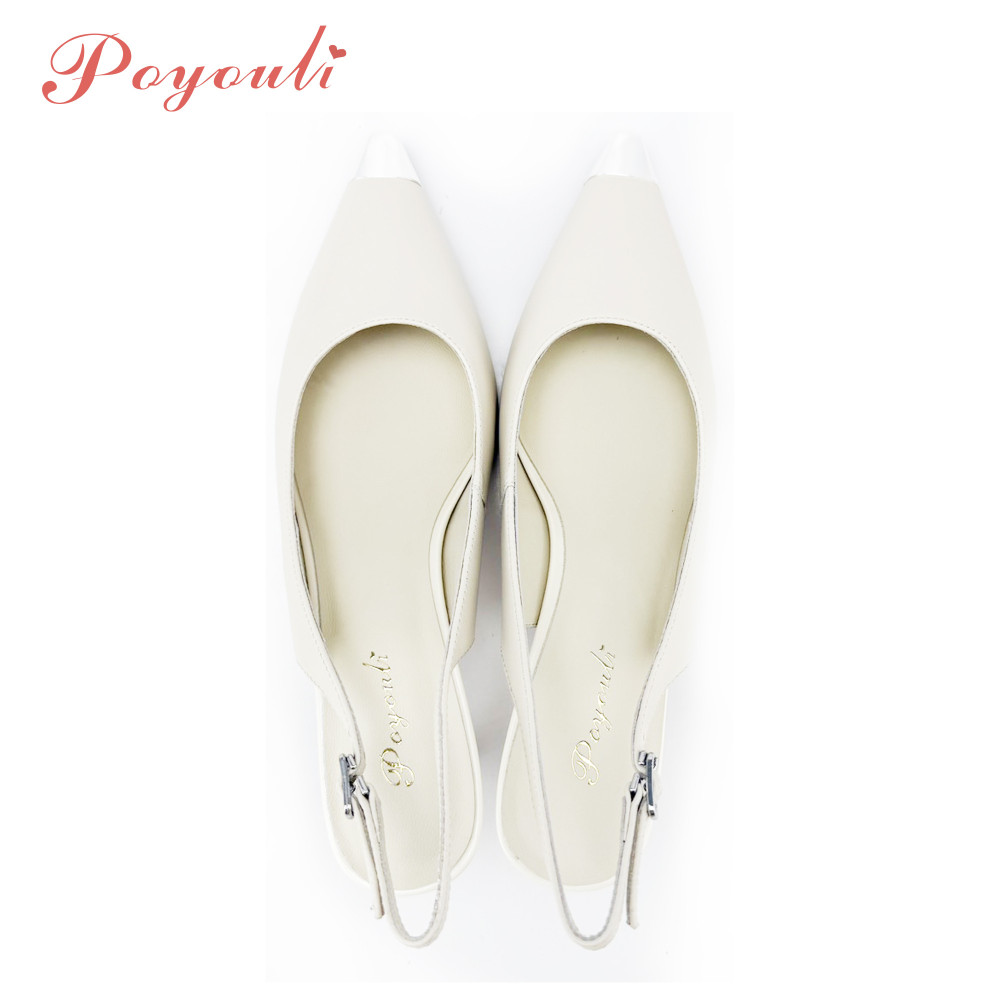 POYOULI韓系時尚點綴中跟尖頭鞋-米白