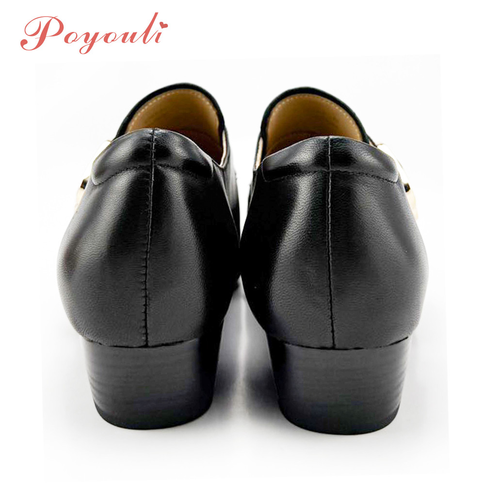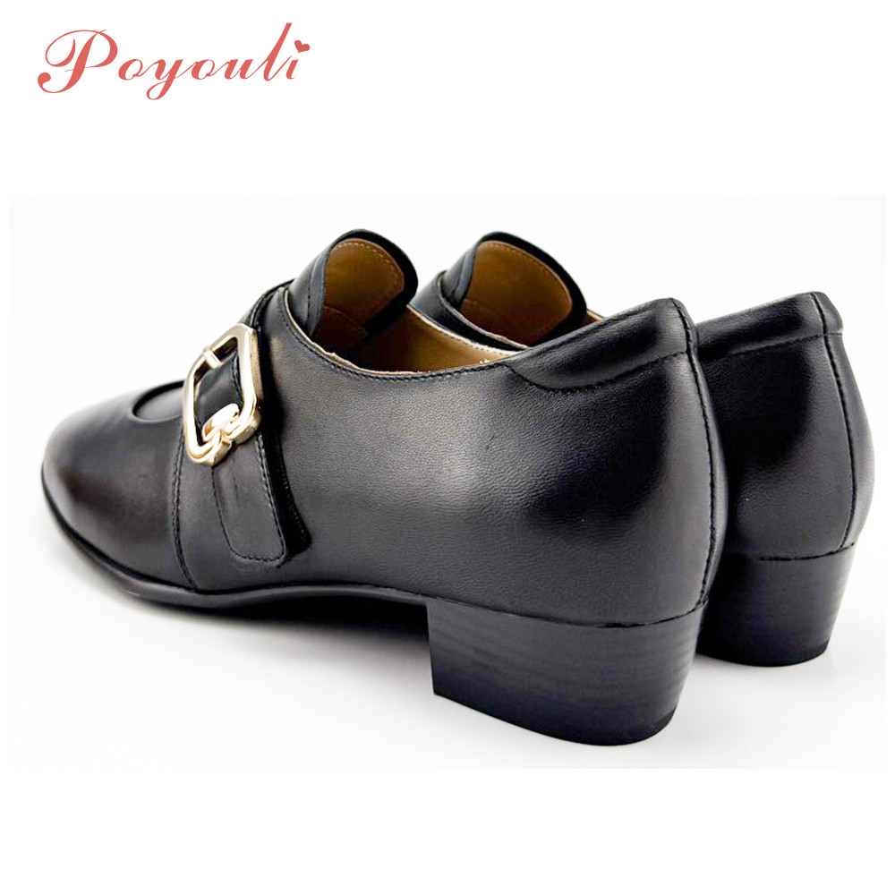 POYOULI率性牛仔風方扣低跟皮鞋-黑
