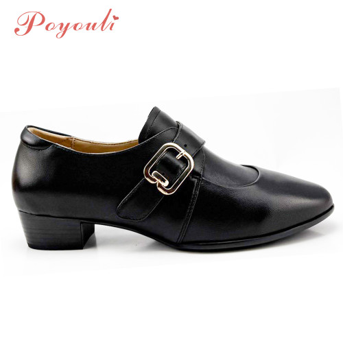 • 商品名稱:POYOULI率性牛仔風方扣低跟皮鞋-黑