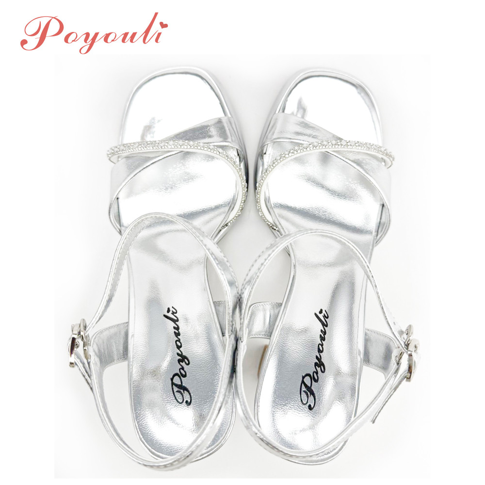 POYOULI奢華高級帶鑽高跟涼鞋-銀