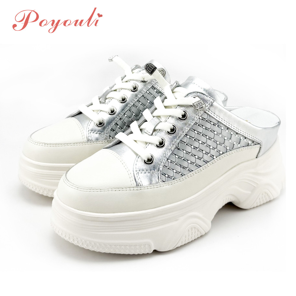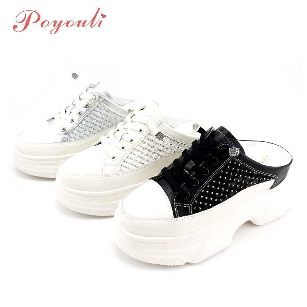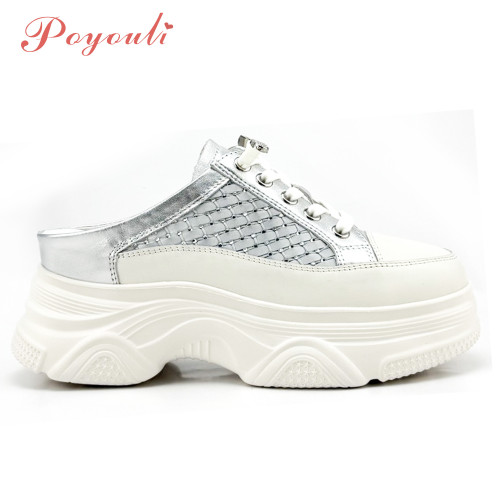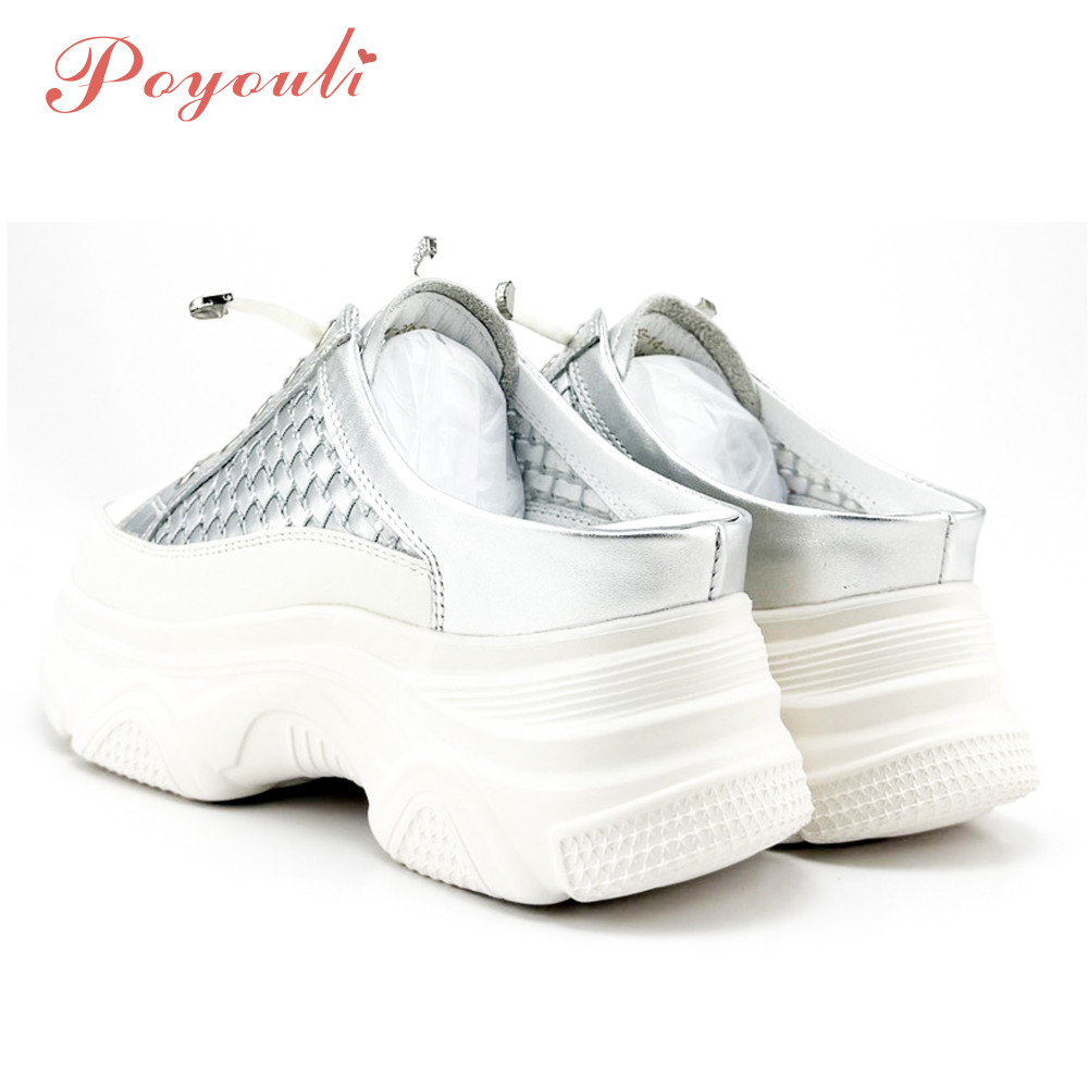 POYOULI細鑽知性厚底懶人休閒鞋-銀