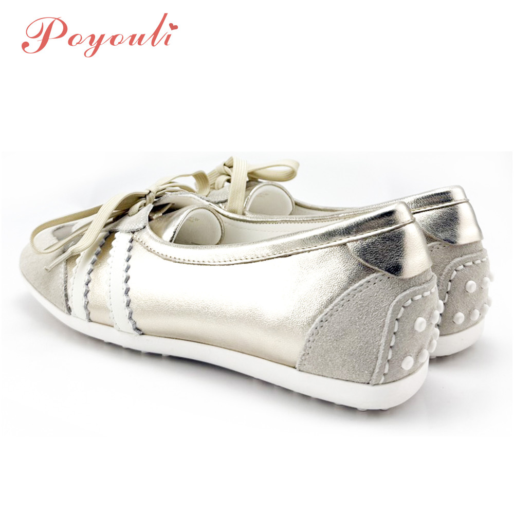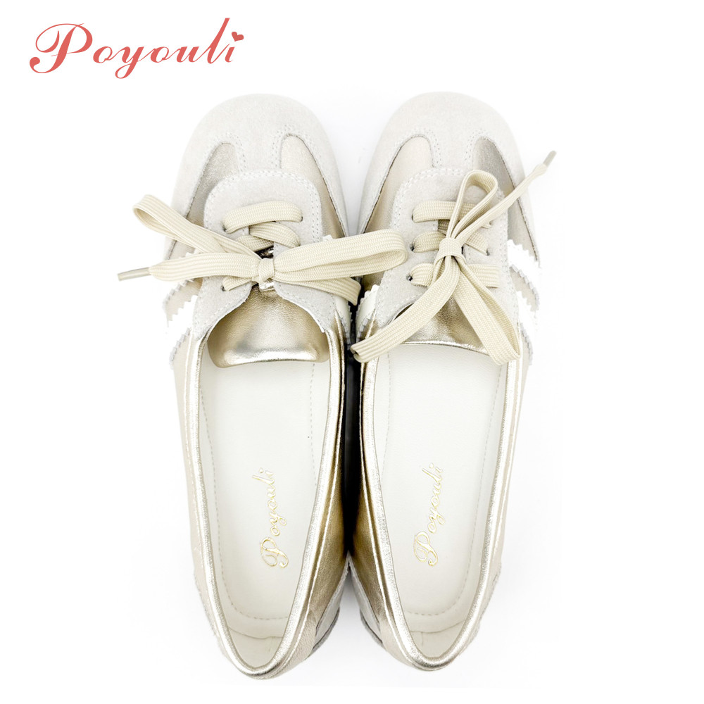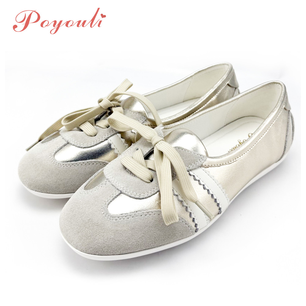 POYOULI可愛奢華芭蕾舞休閒鞋-金