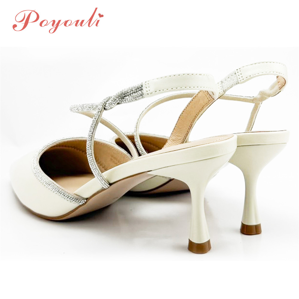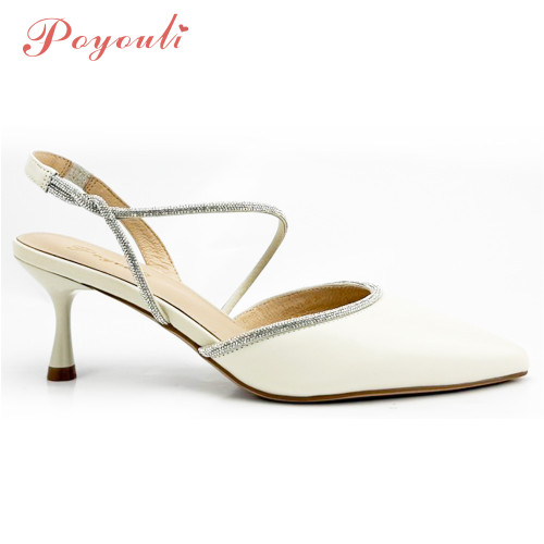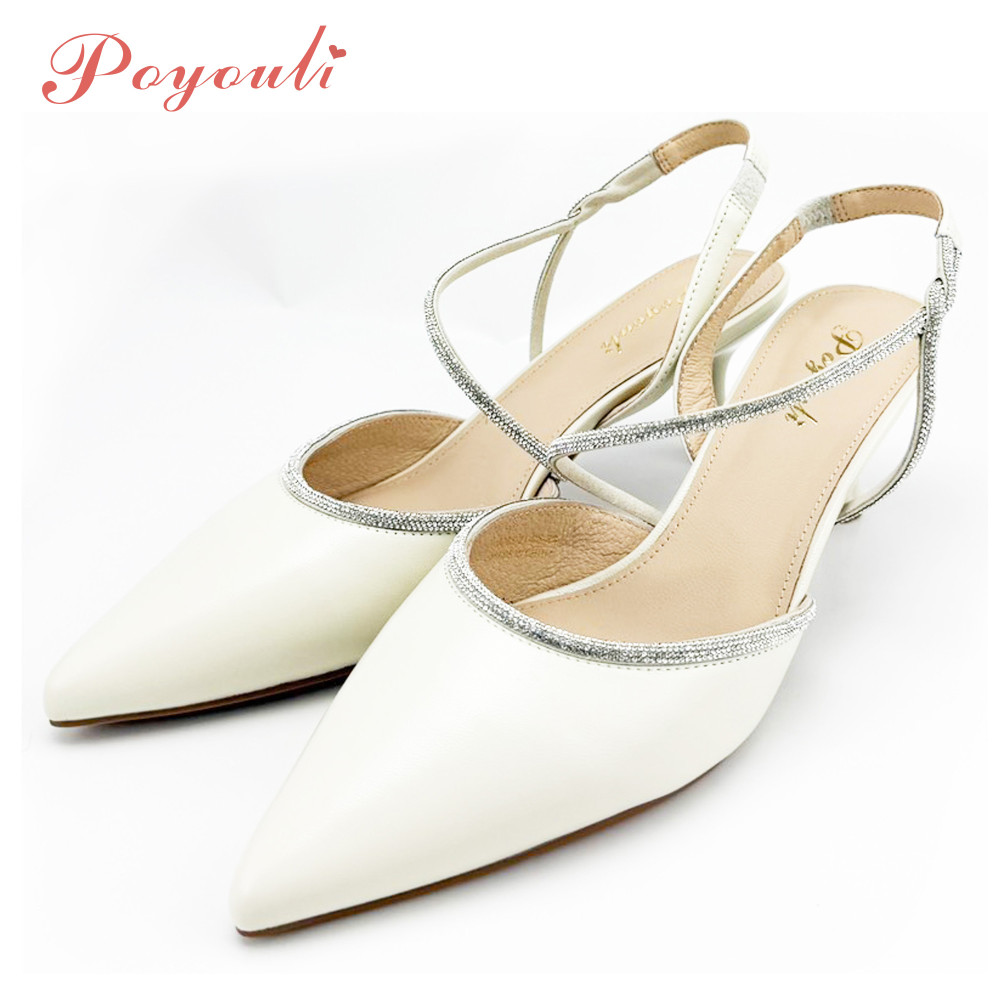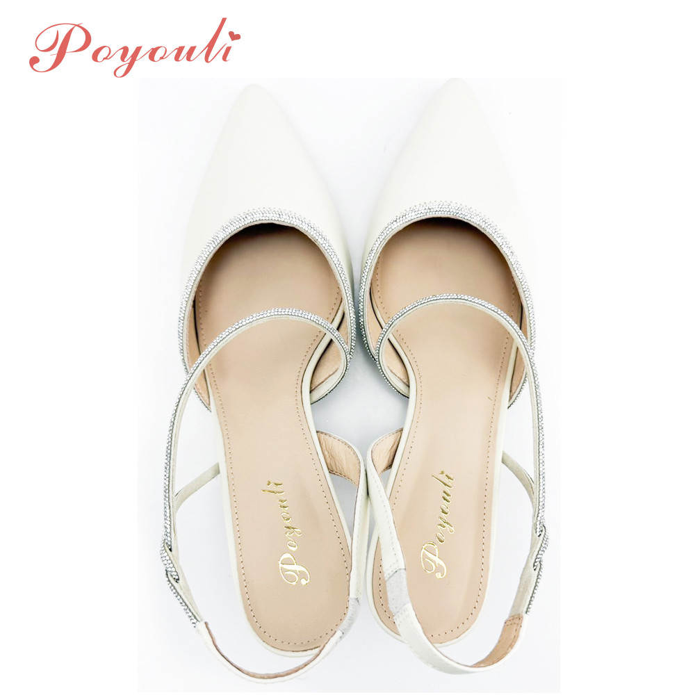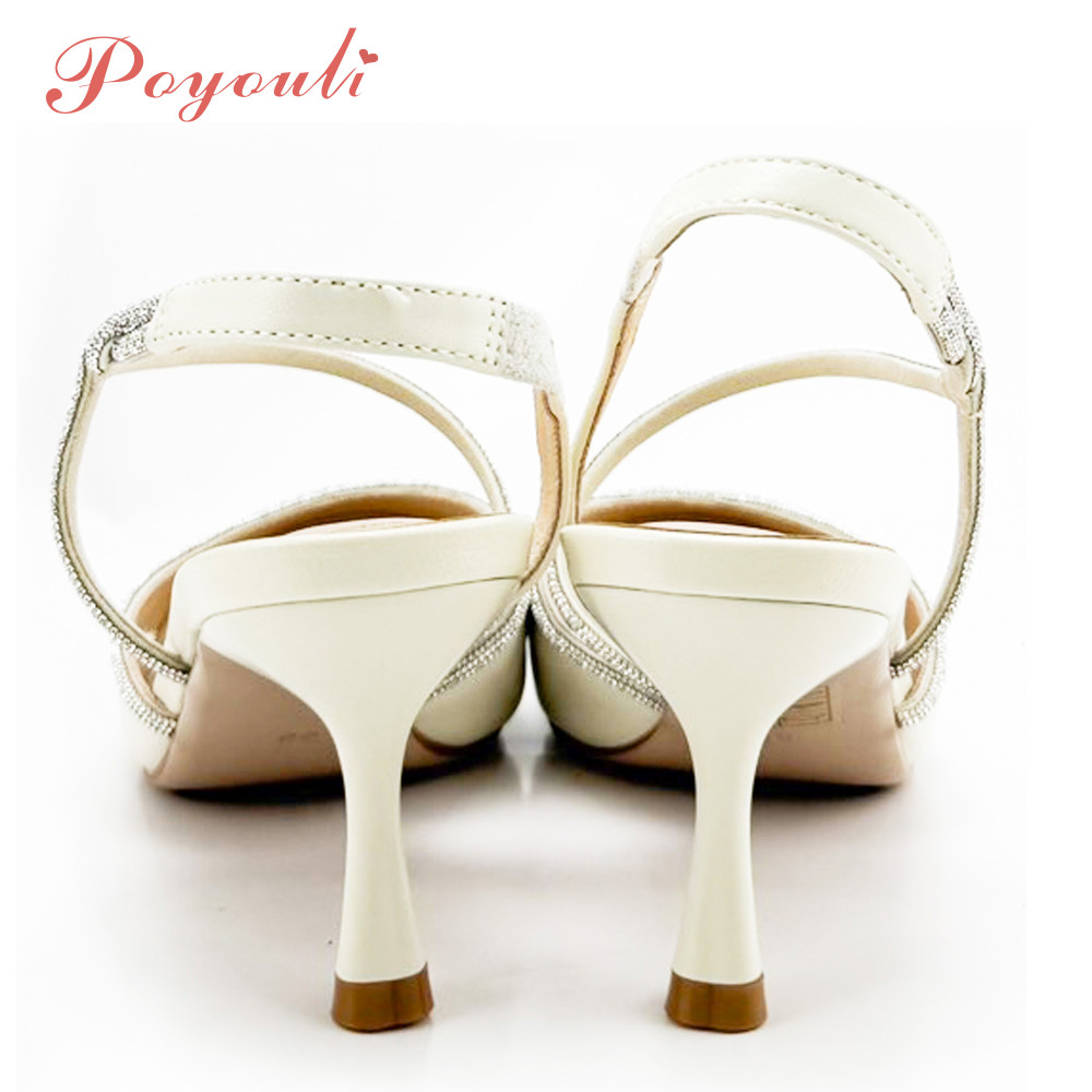 POYOULI高級奢華細閃尖頭高跟鞋-米白