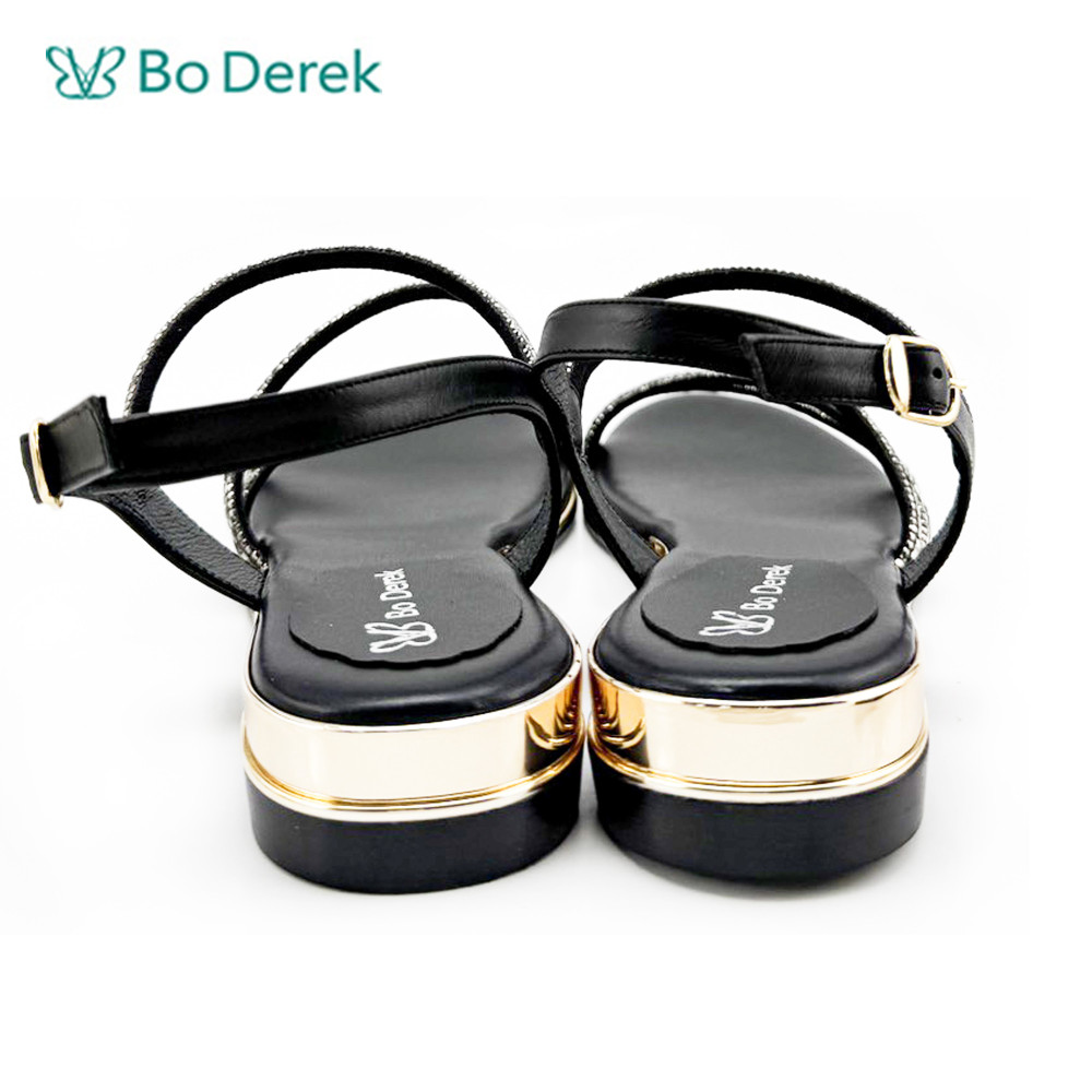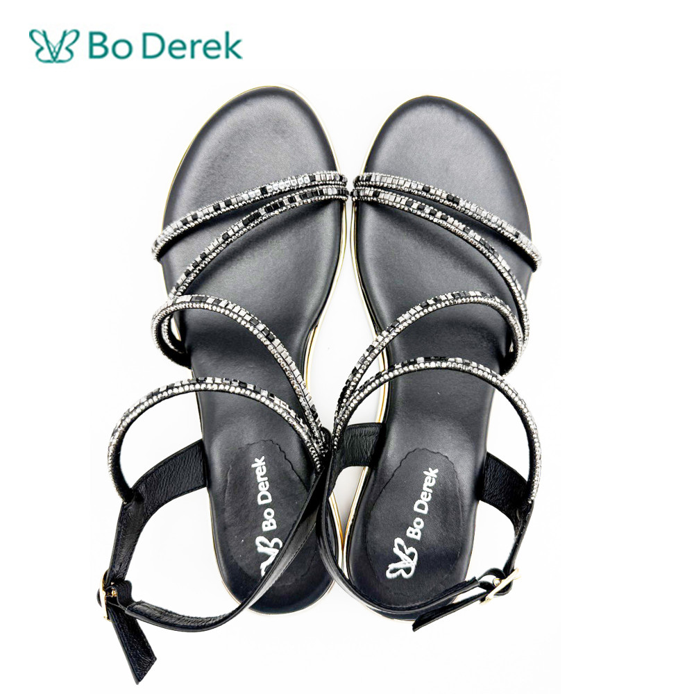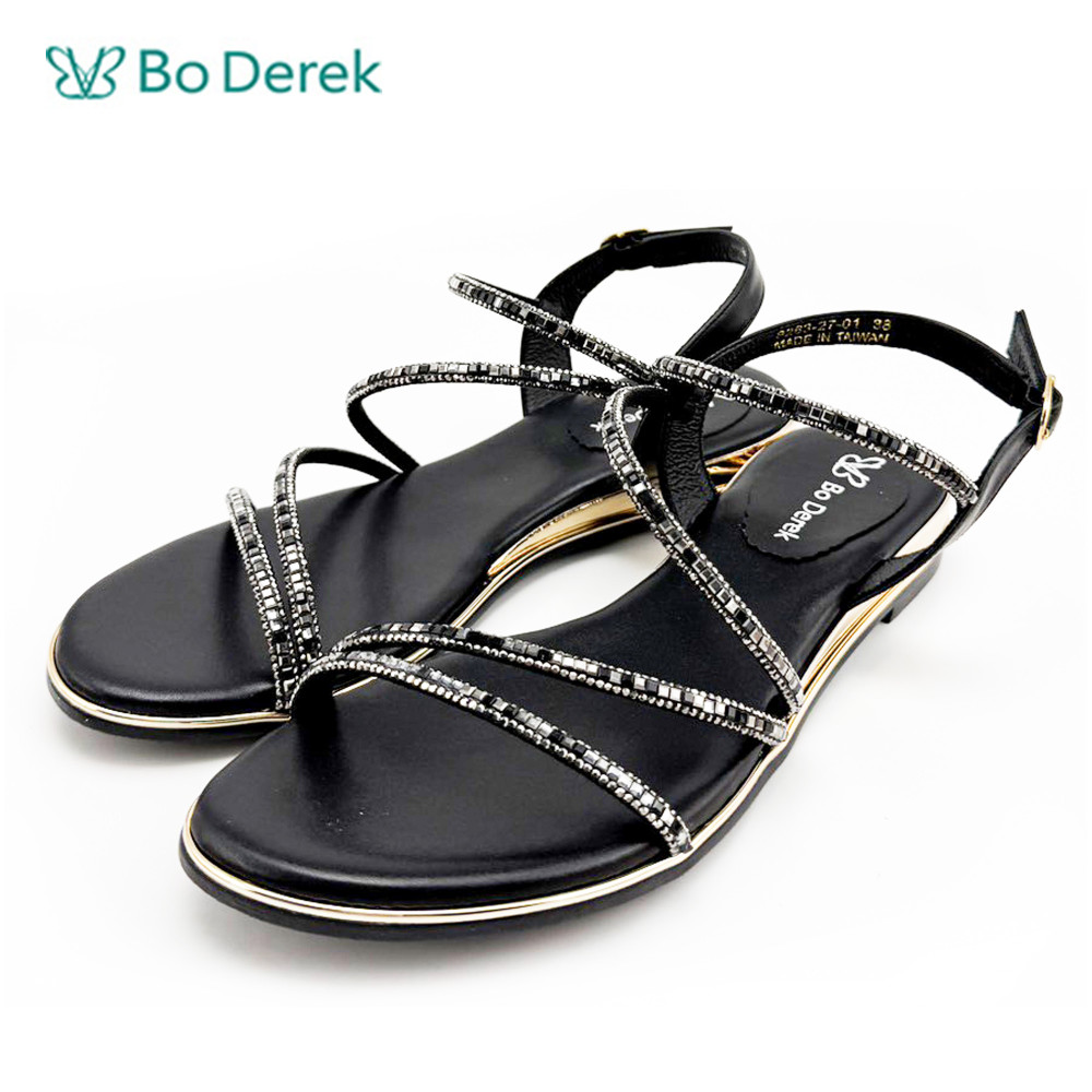 Bo Derek低調氣質鑽條繫帶涼鞋-黑