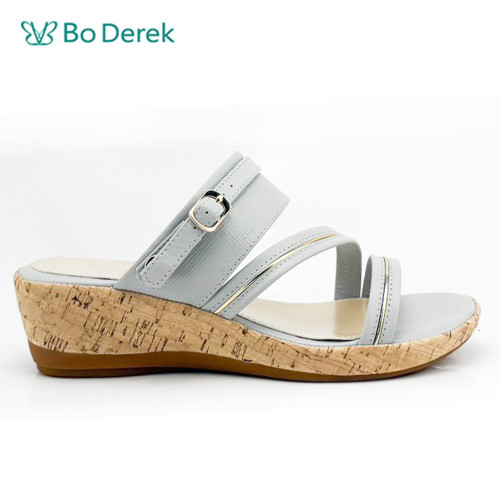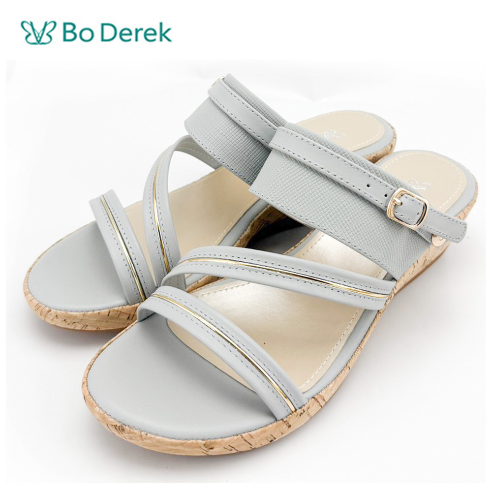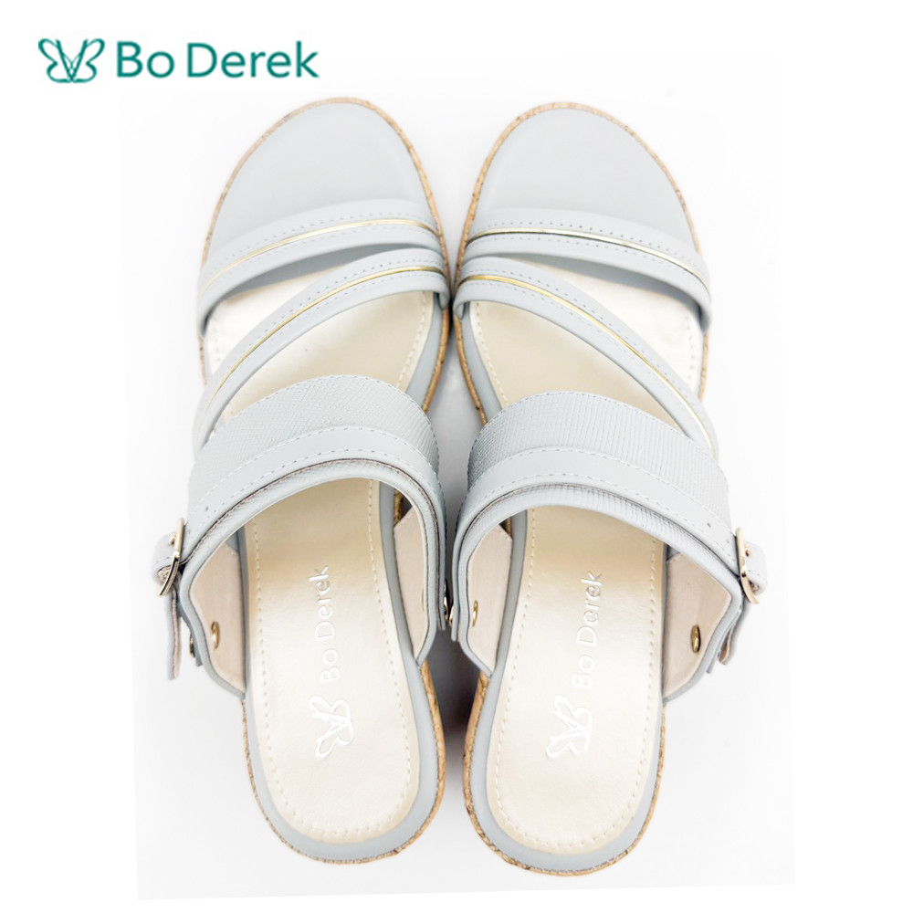 Bo Derek素雅簡約厚底涼拖鞋-灰藍