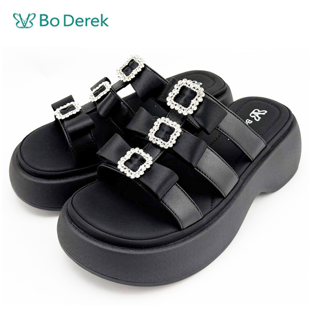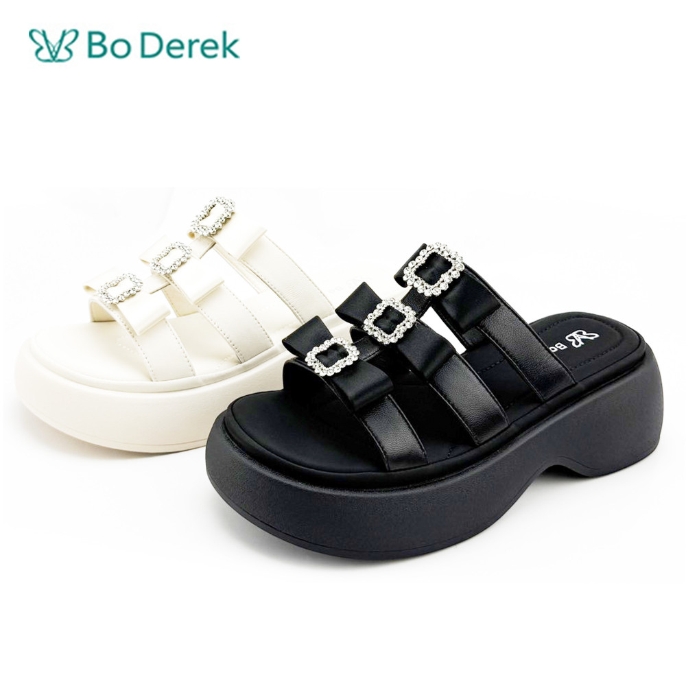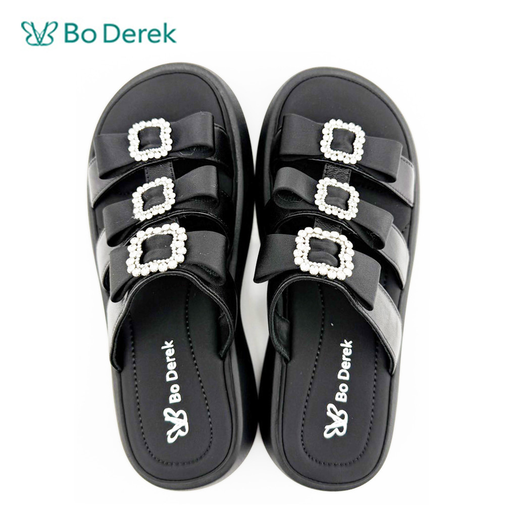 Bo Derek可愛韓系蝴蝶結厚底拖鞋-黑