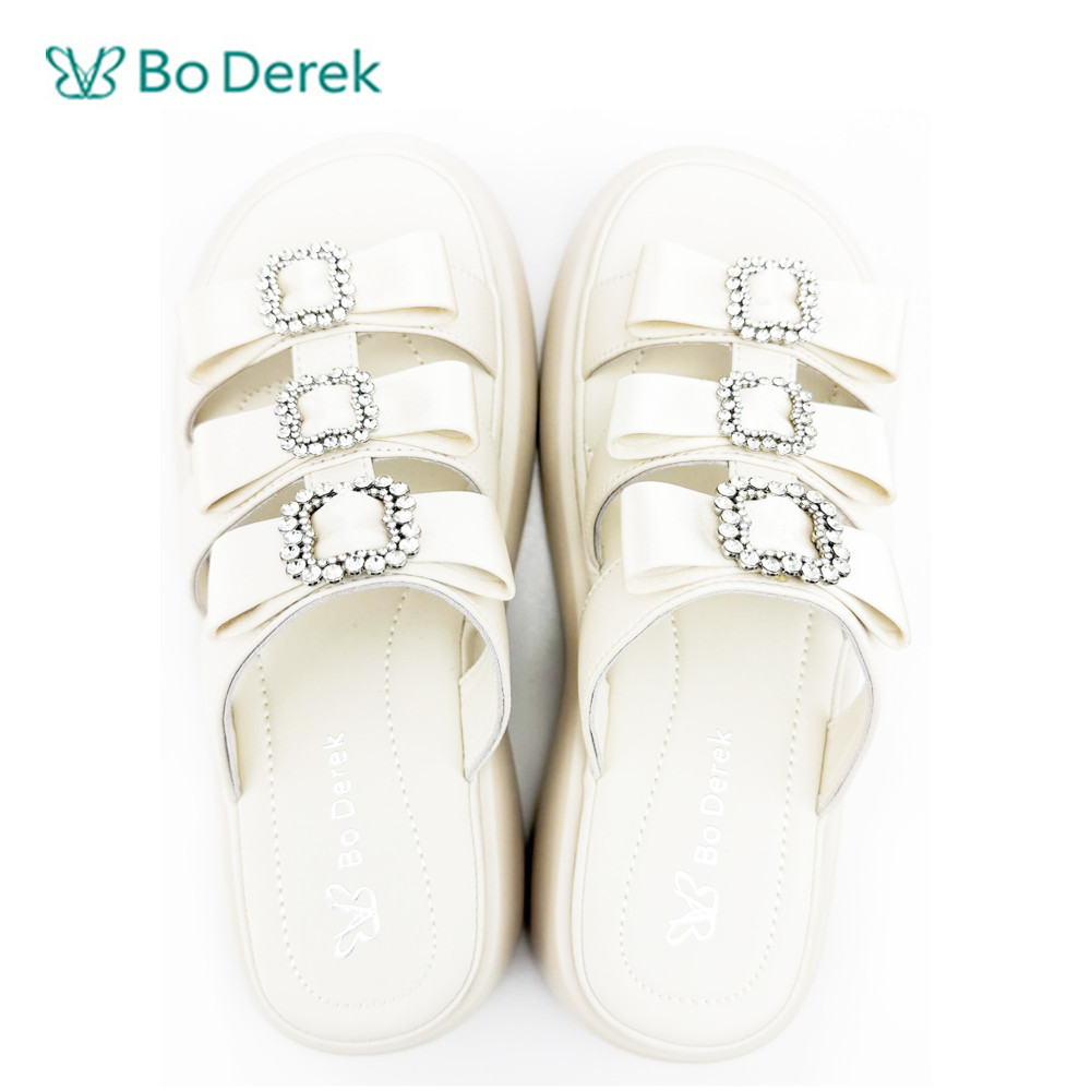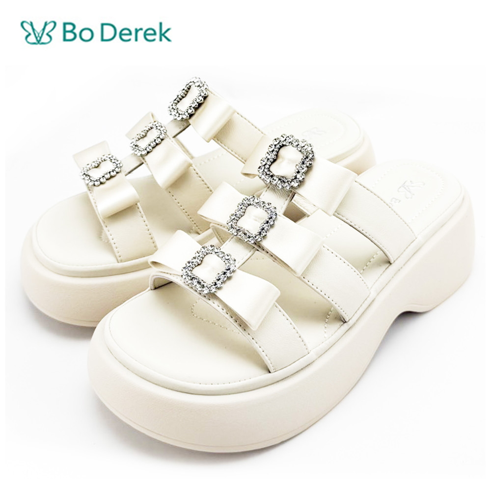 Bo Derek可愛韓系蝴蝶結厚底拖鞋-米