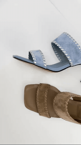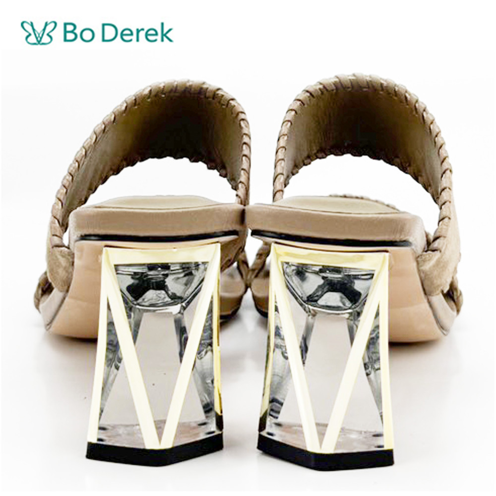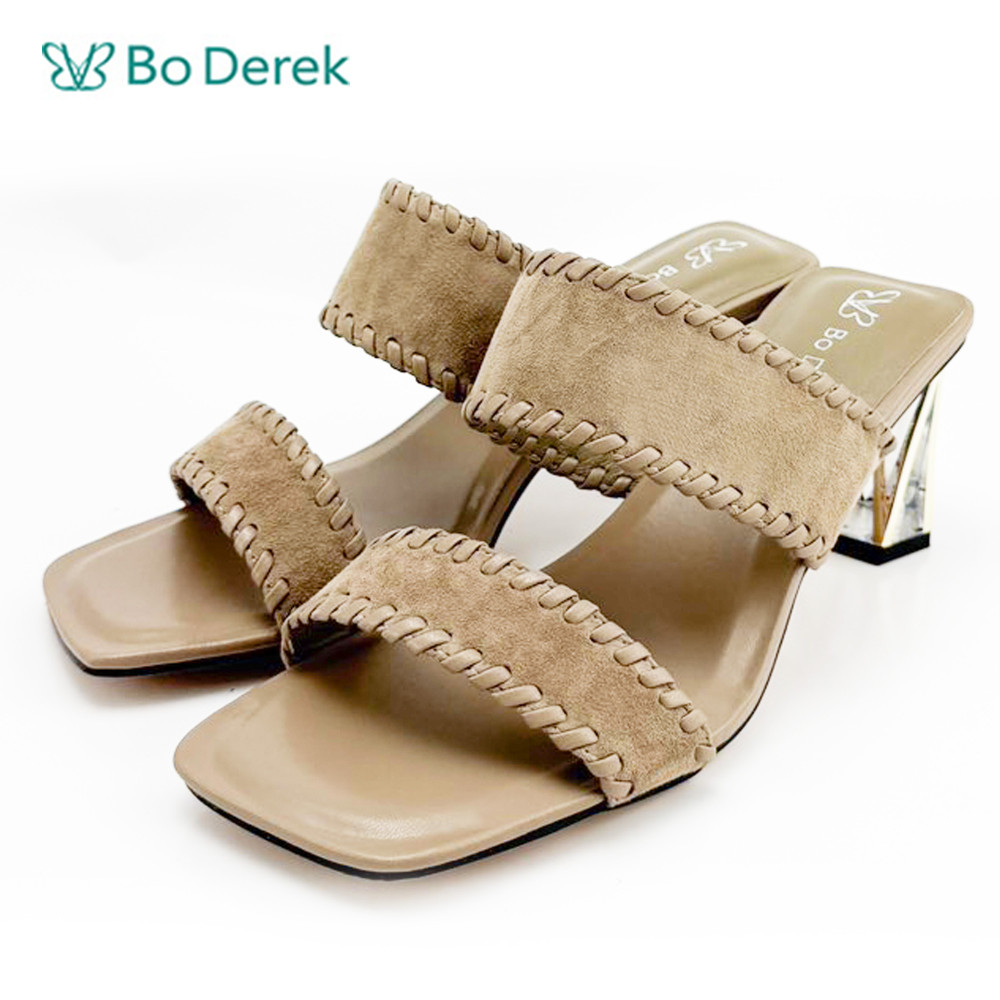 Bo Derek低調羊皮編織感高跟拖鞋-淺棕