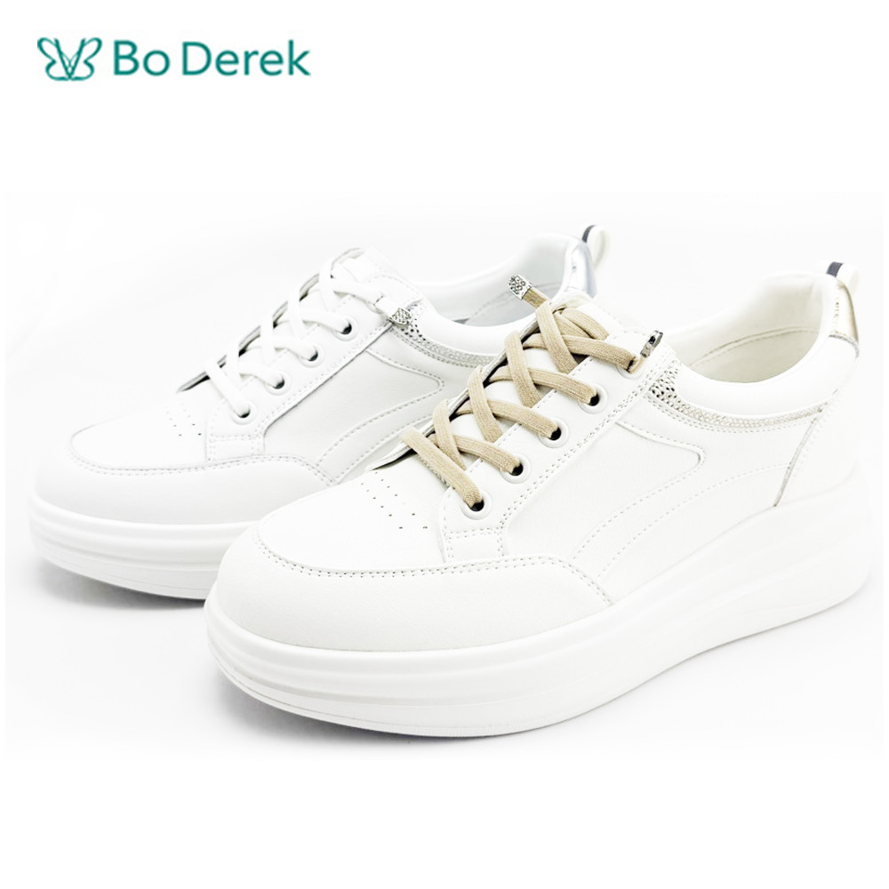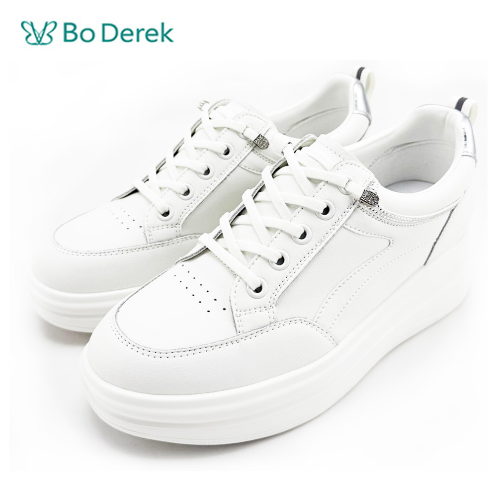 Bo Derek素雅圓頭顯瘦厚底休閒鞋-白