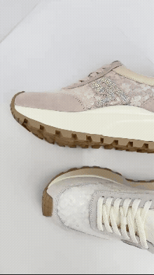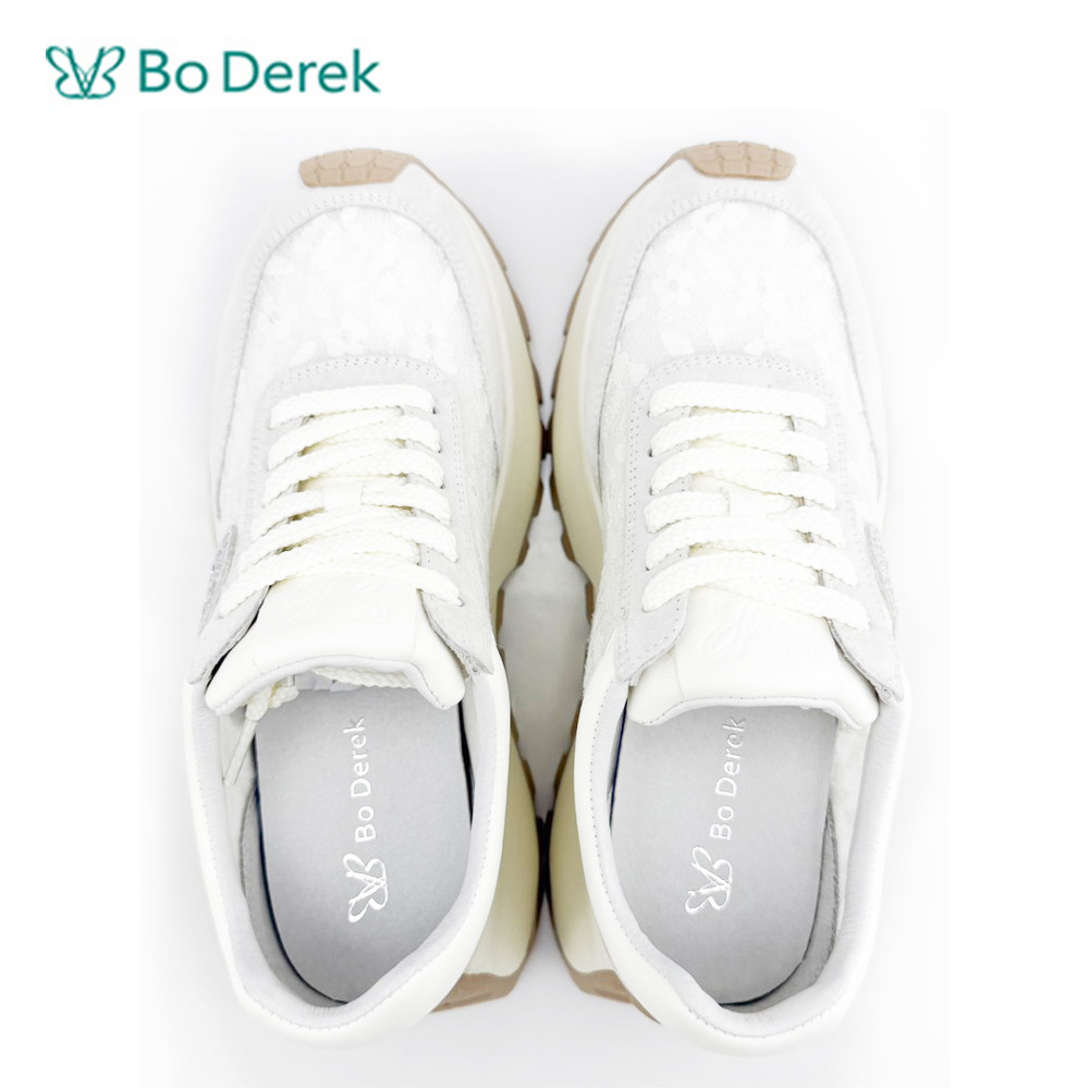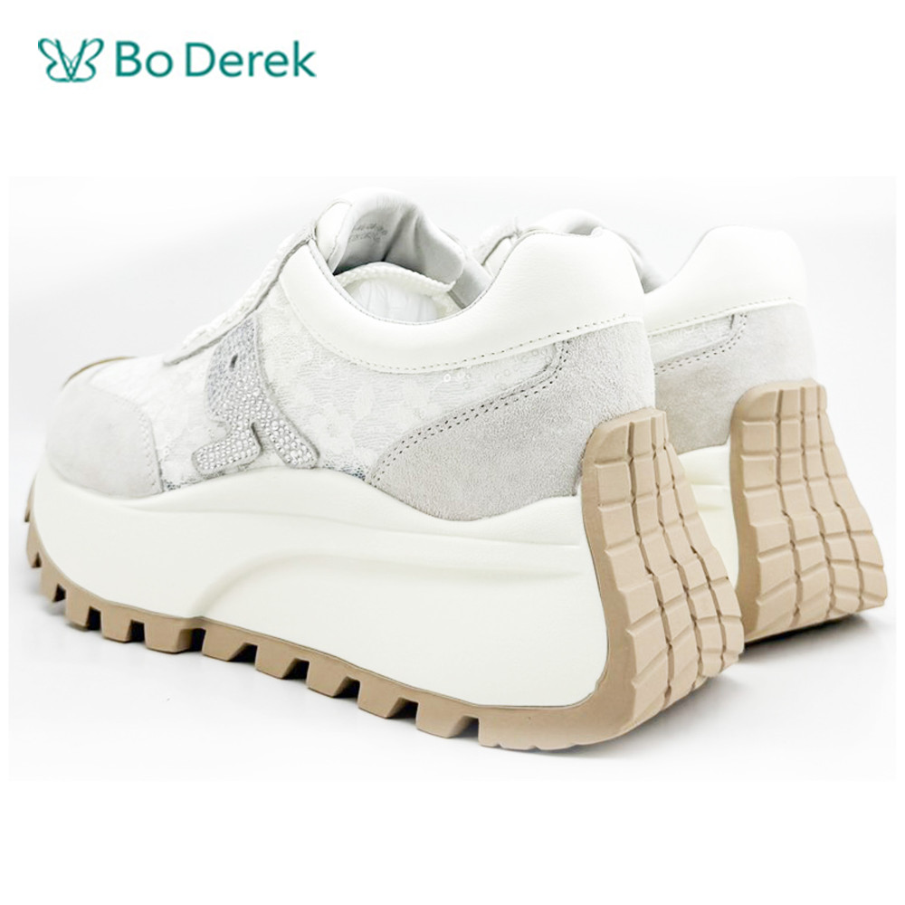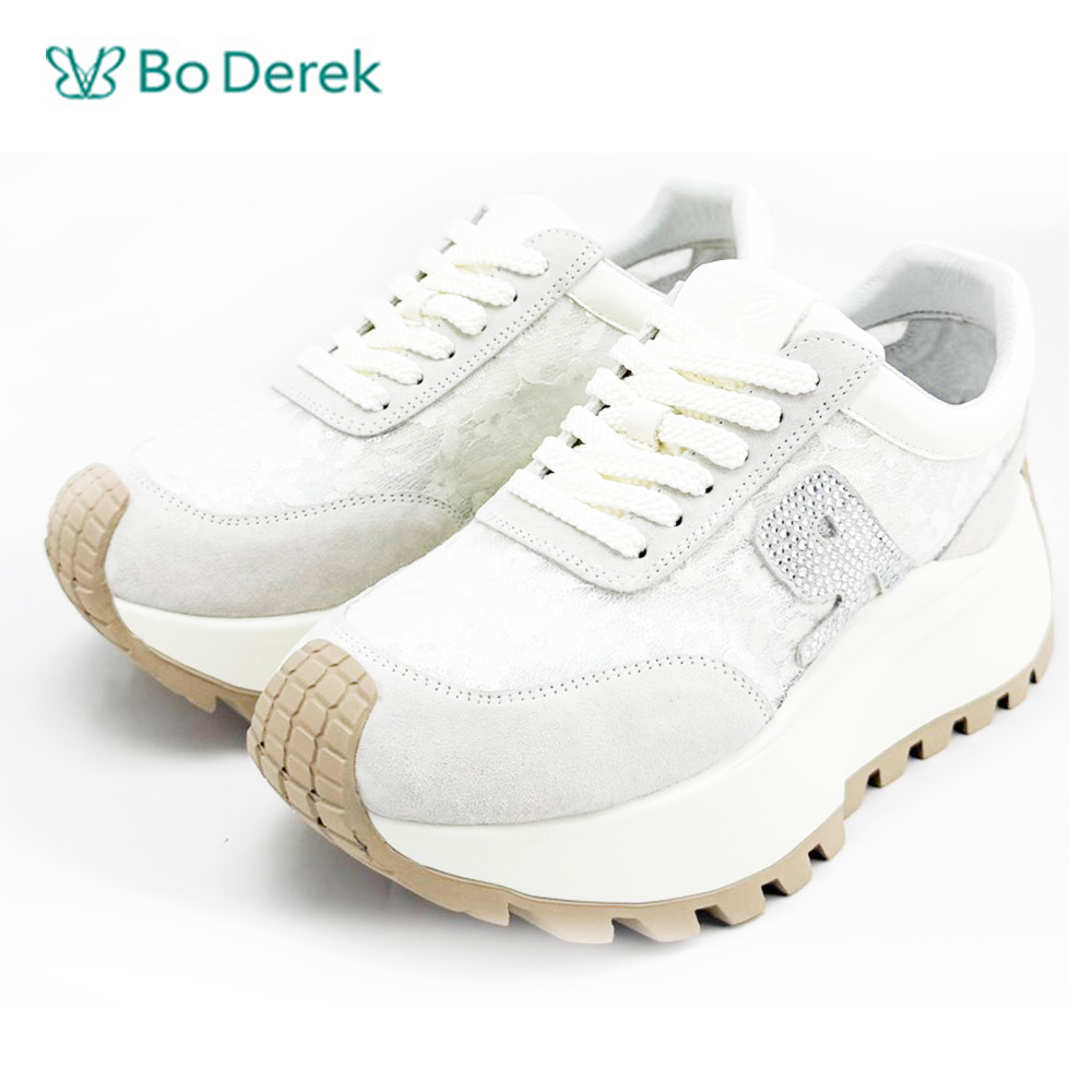 Bo Derek網布帶鑽厚底增高休閒鞋-米