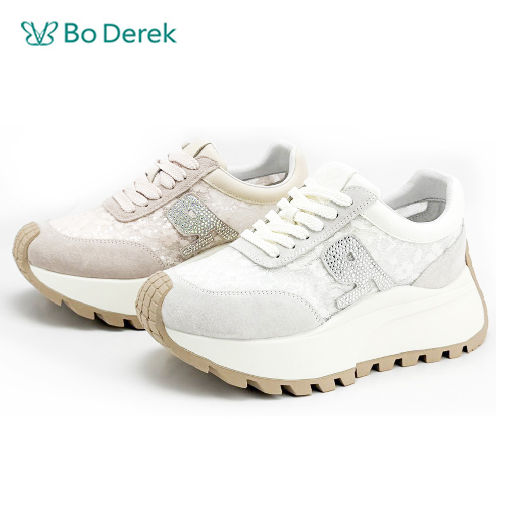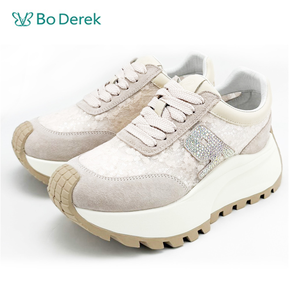 • 商品名稱:Bo Derek網布帶鑽厚底增高休閒鞋-粉