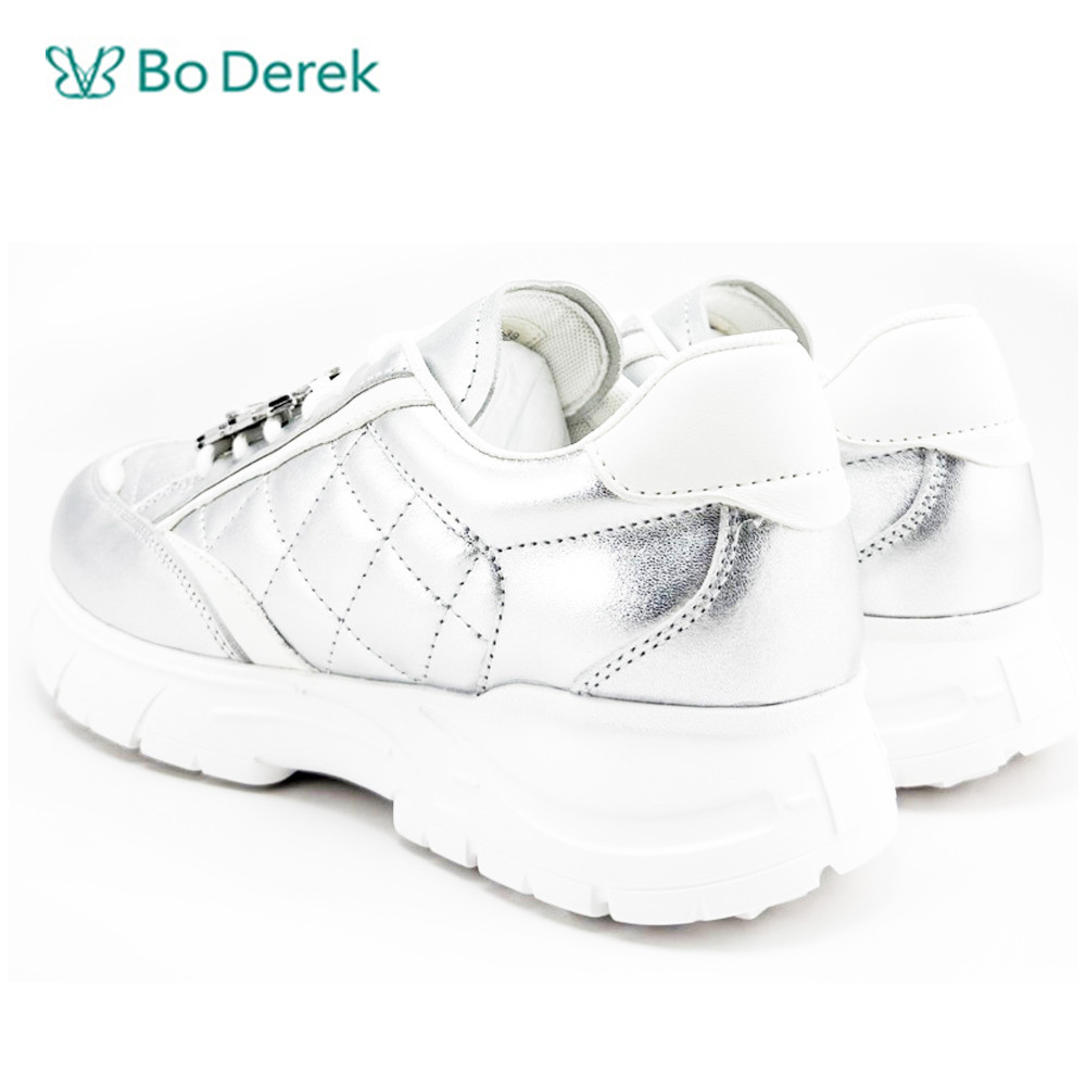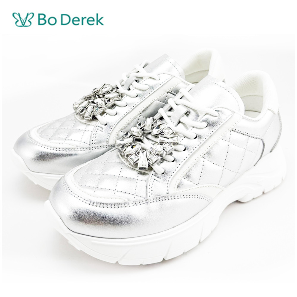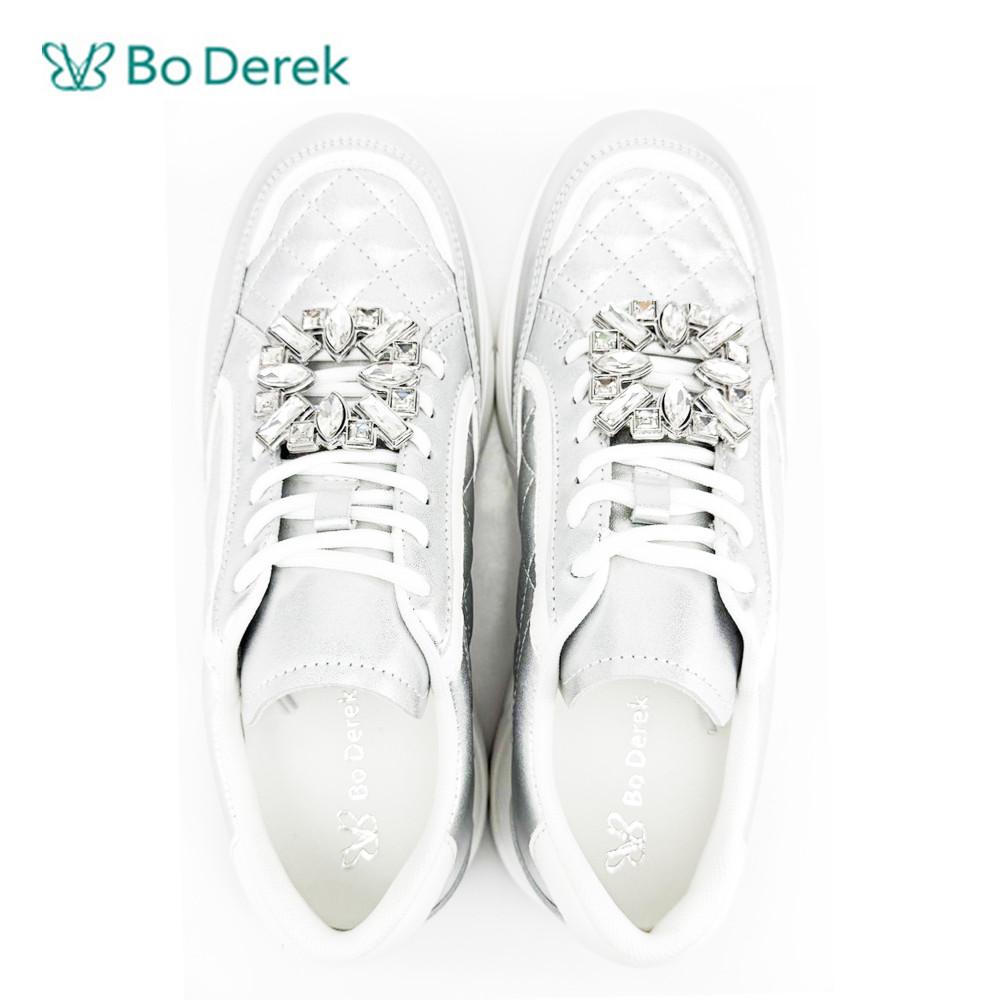 Bo Derek方形鑽網格紋增高休閒鞋-銀