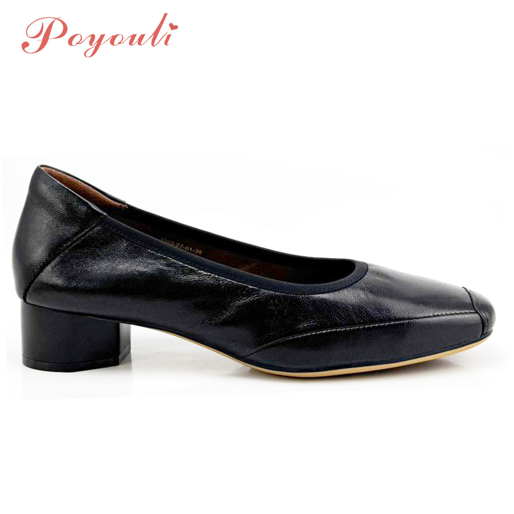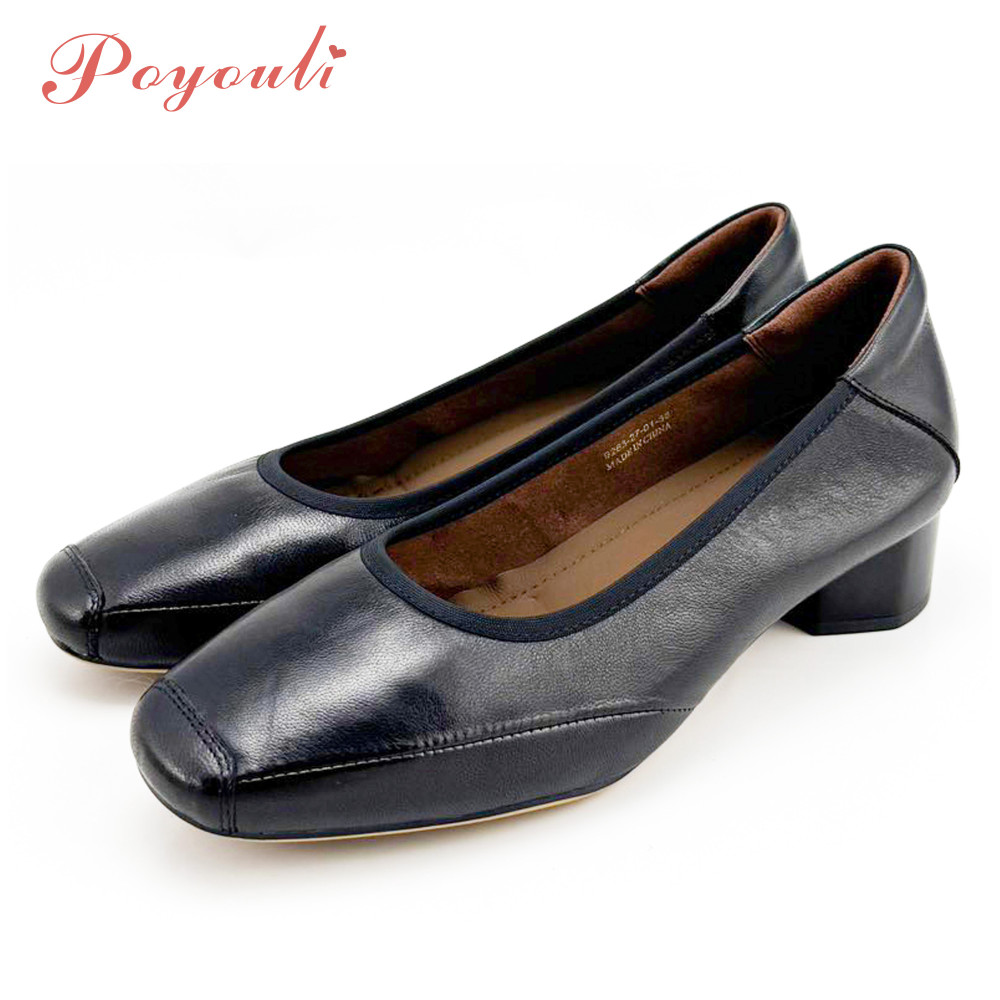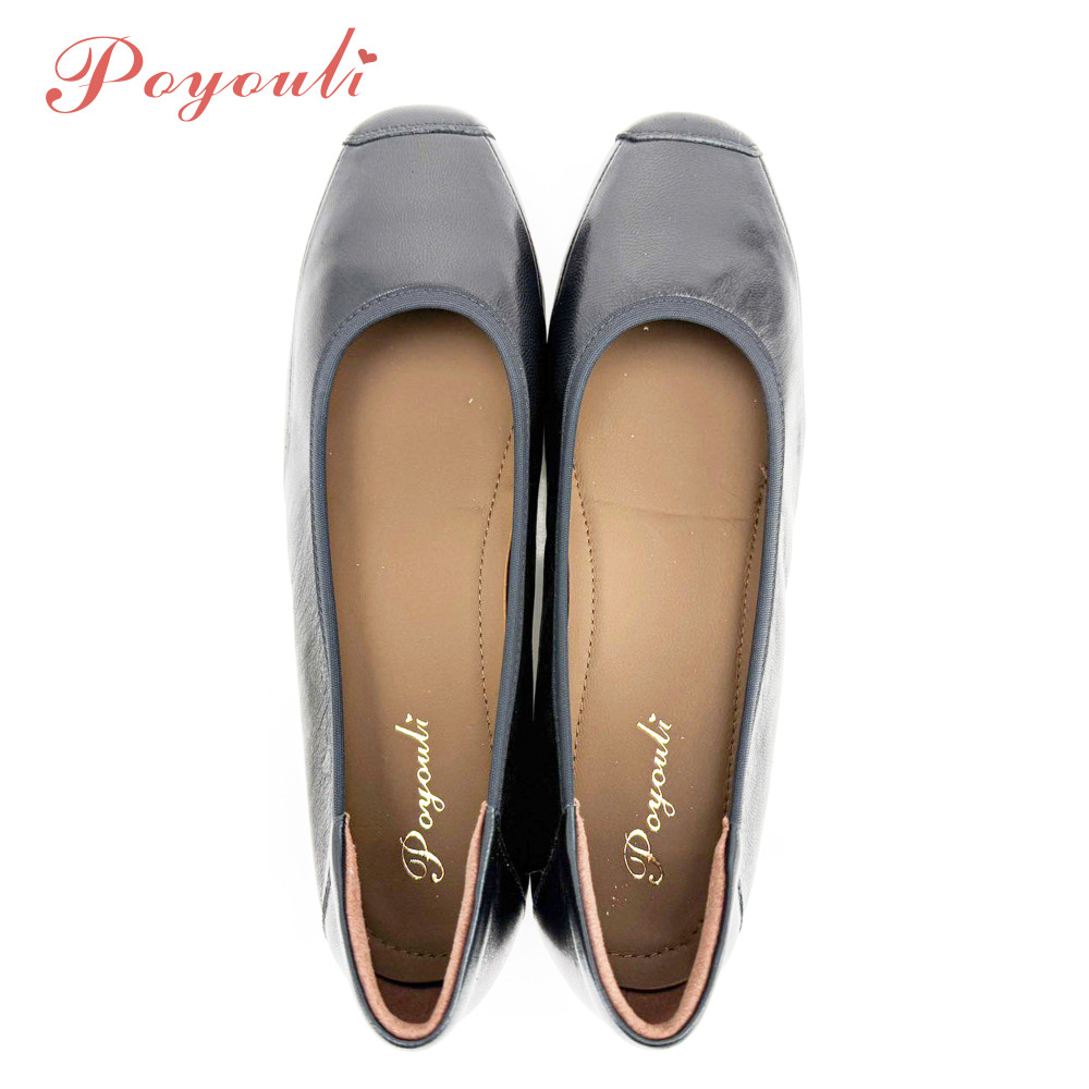 POYOULI韓系文青圓方頭低跟娃娃鞋-黑