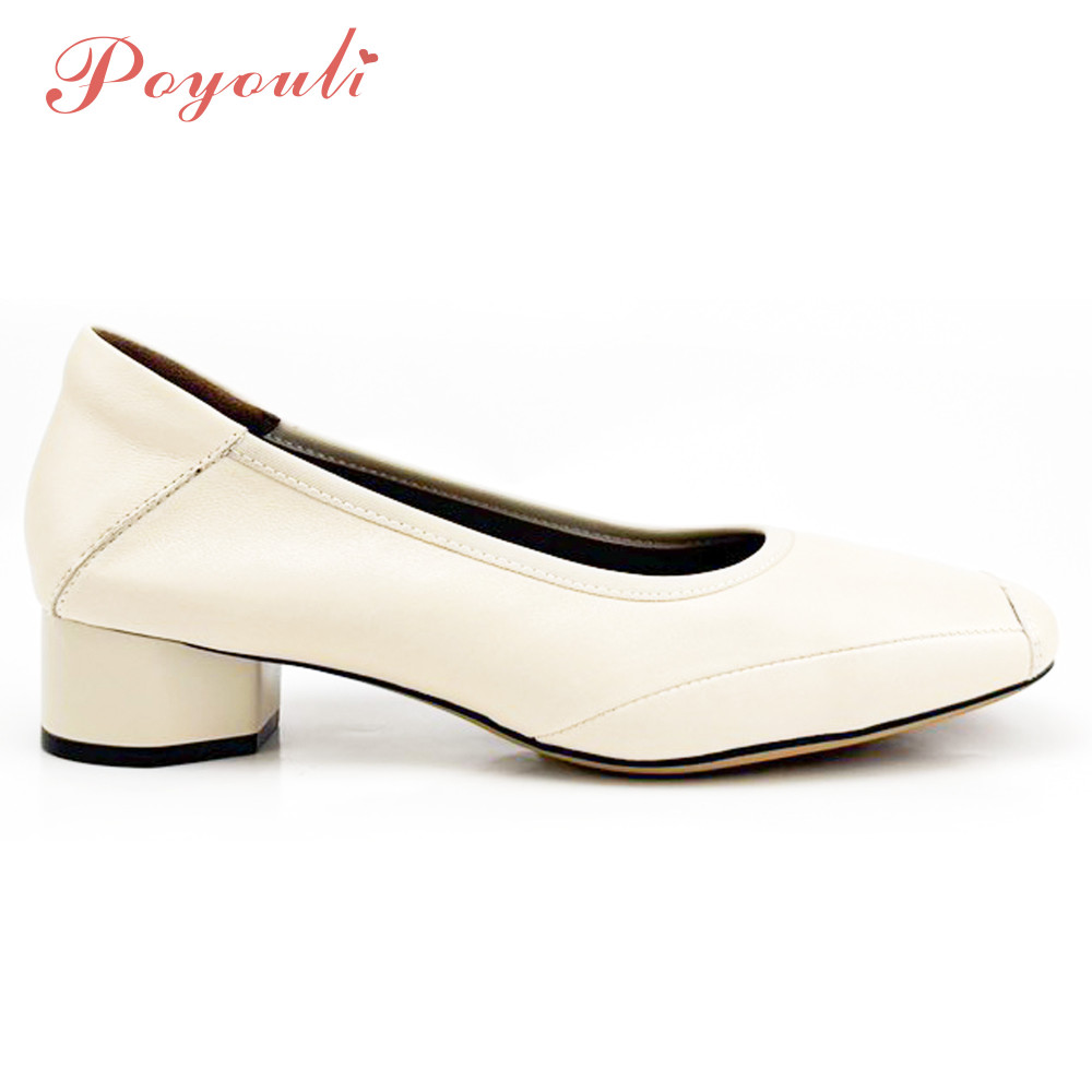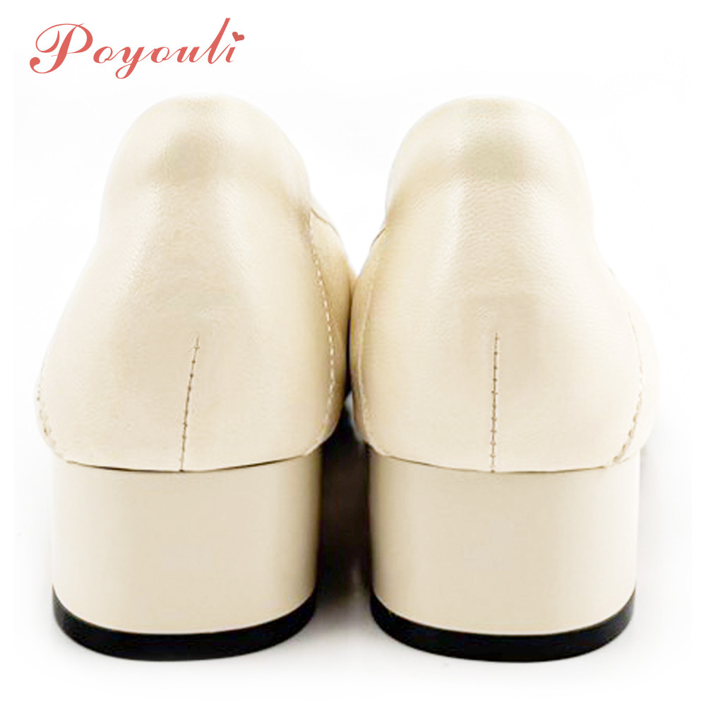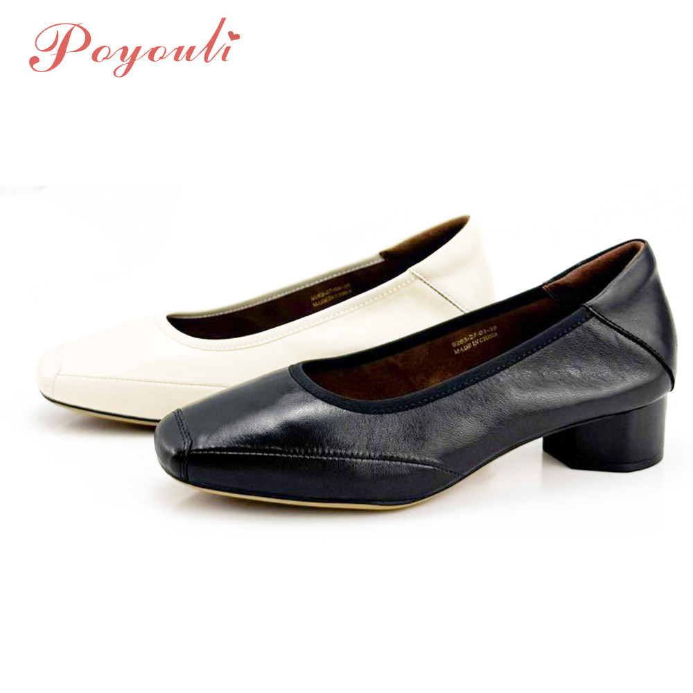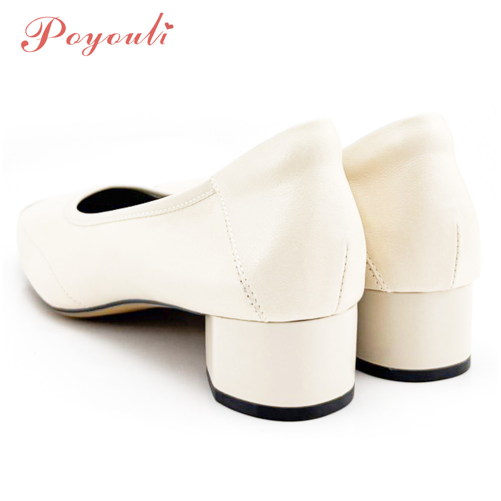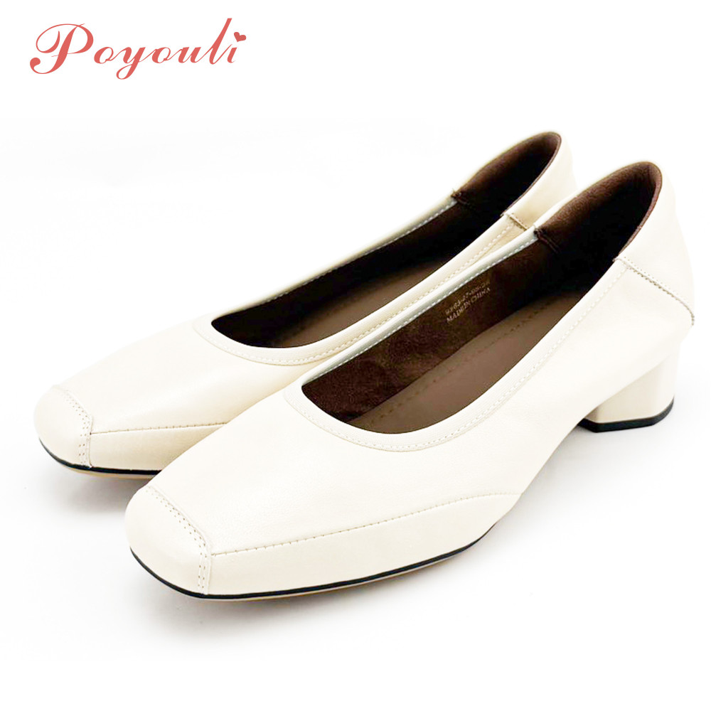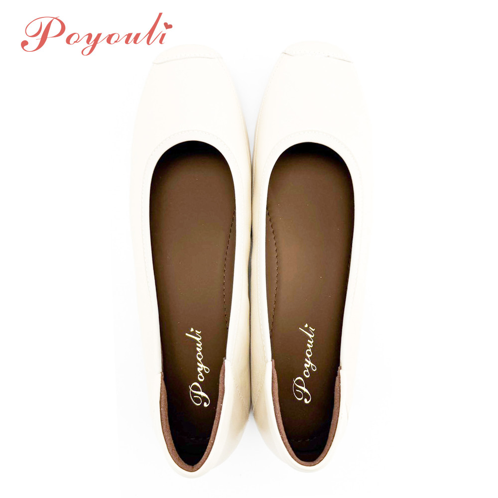 POYOULI韓系文青圓方頭低跟娃娃鞋-米